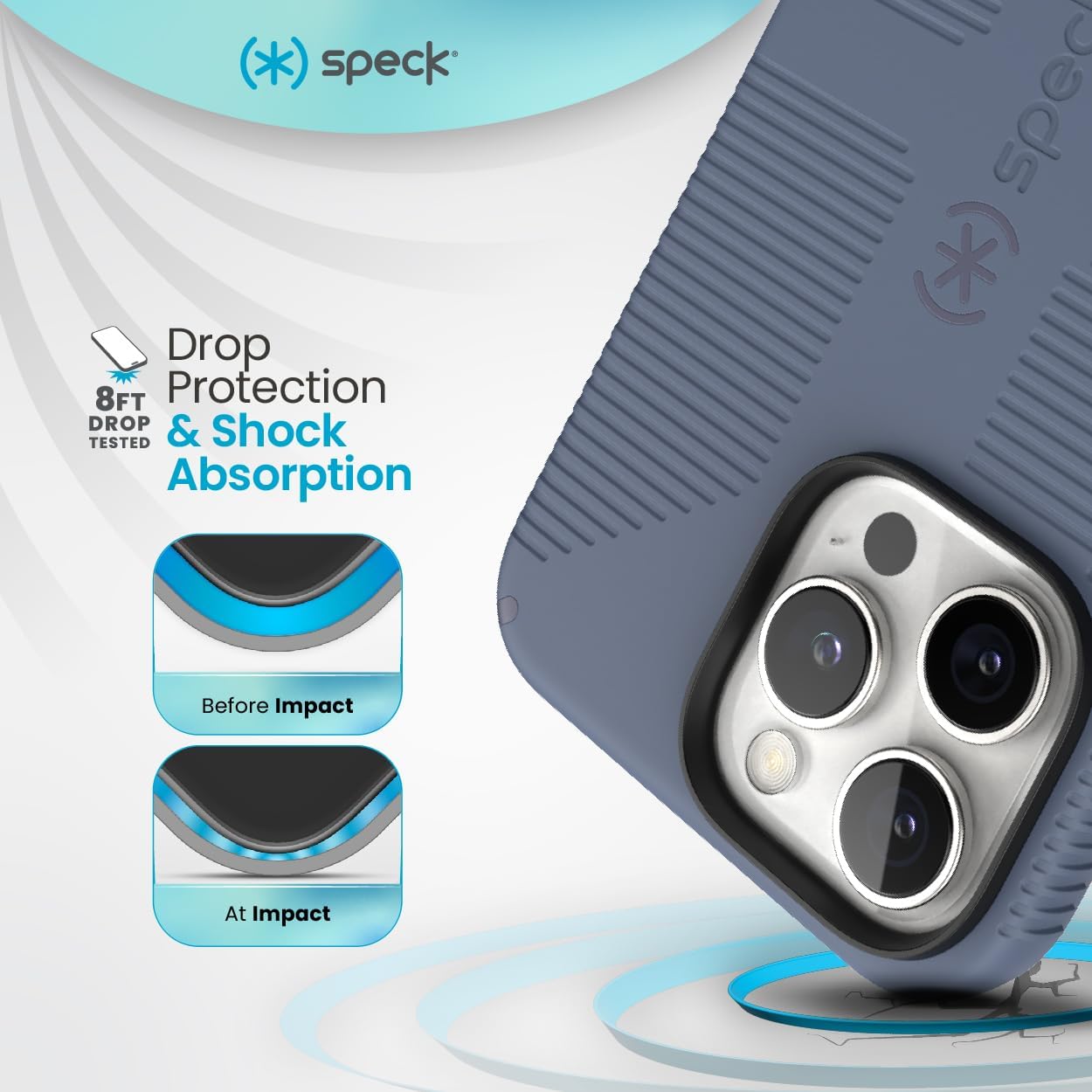 NO-SLIP GRIP – Speck’s iPhone16 Pro Max case provides a precise fit with no-slip, raised rubber grips. Its slim design ensures full access to all ports and buttons while offering exceptional drop protection to keep your phone pristine. Dual-Layered Construction. Dual-Layered Construction.
