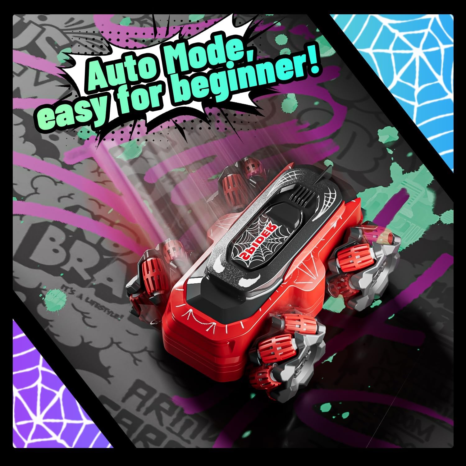 Perfect Gift for Kids Who Love Action & Adventure: With its spider-inspired design, land-and-water capabilities, and remote storage feature, this RC car makes an unforgettable gift for birthdays, holidays, or any special occasion. A top pick for boys and girls who love fast-paced fun and superhero vibes.