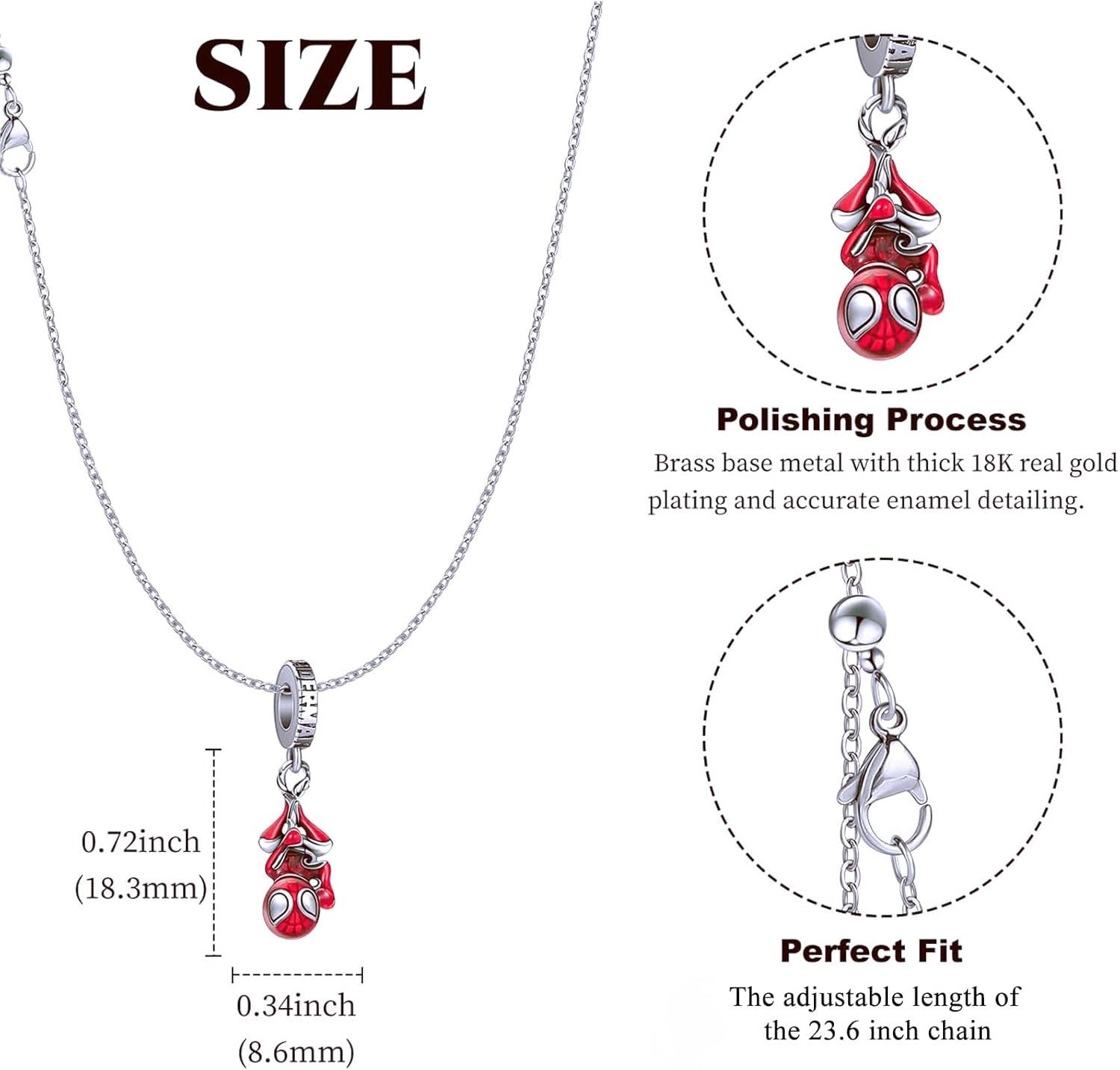 SpiderMan Pendant Necklace for Women and Man,Red Adjustable Spider Jewelry Chain,Ideal Spider Man’s Pink Gift for spider man Fans,Cosplay,Daily Wear