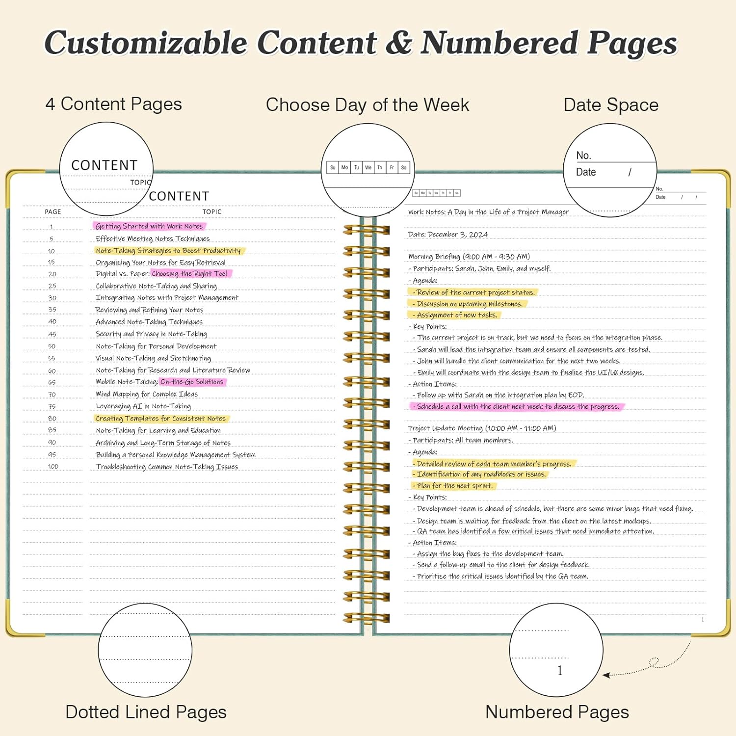 Spiral Notebook, 300 Numbered Pages Notebooks College Ruled with Contens, 100GSM Thick Journal for Women Men, Hardcover Leather Lined Journal for Writing, Large A5 Journaling Notebooks for Work School