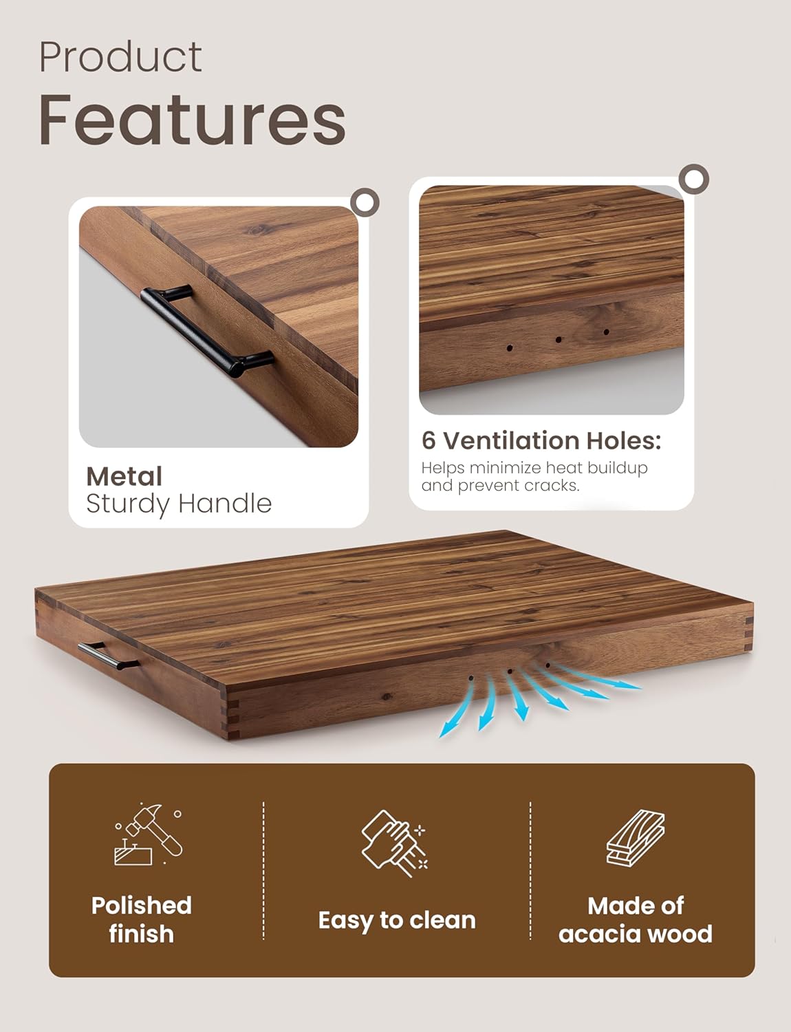 Acacia Wood Material: A timeless symbol of quality and durability: Our noodle boards are crafted from the finest Acacia wood, enhancing your kitchen’s aesthetic appeal while providing a durable surface that stands the test of time.