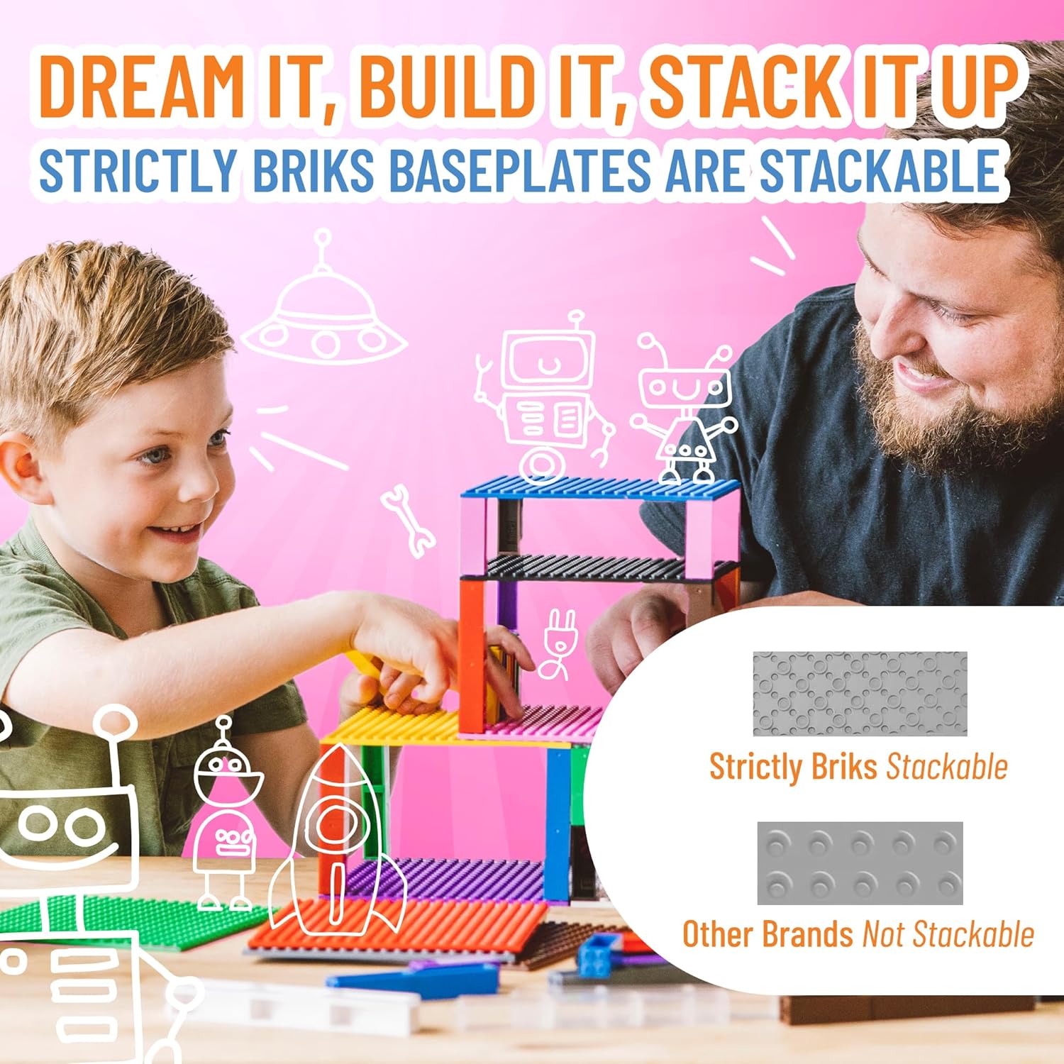 Creative Building Adventures: Strictly Briks’ stackable baseplates are compatible with LEGO and other major toy brands, making them perfect for epic building adventures. Unleash your imagination and create massive cities or towering castles with these durable building brick baseplates