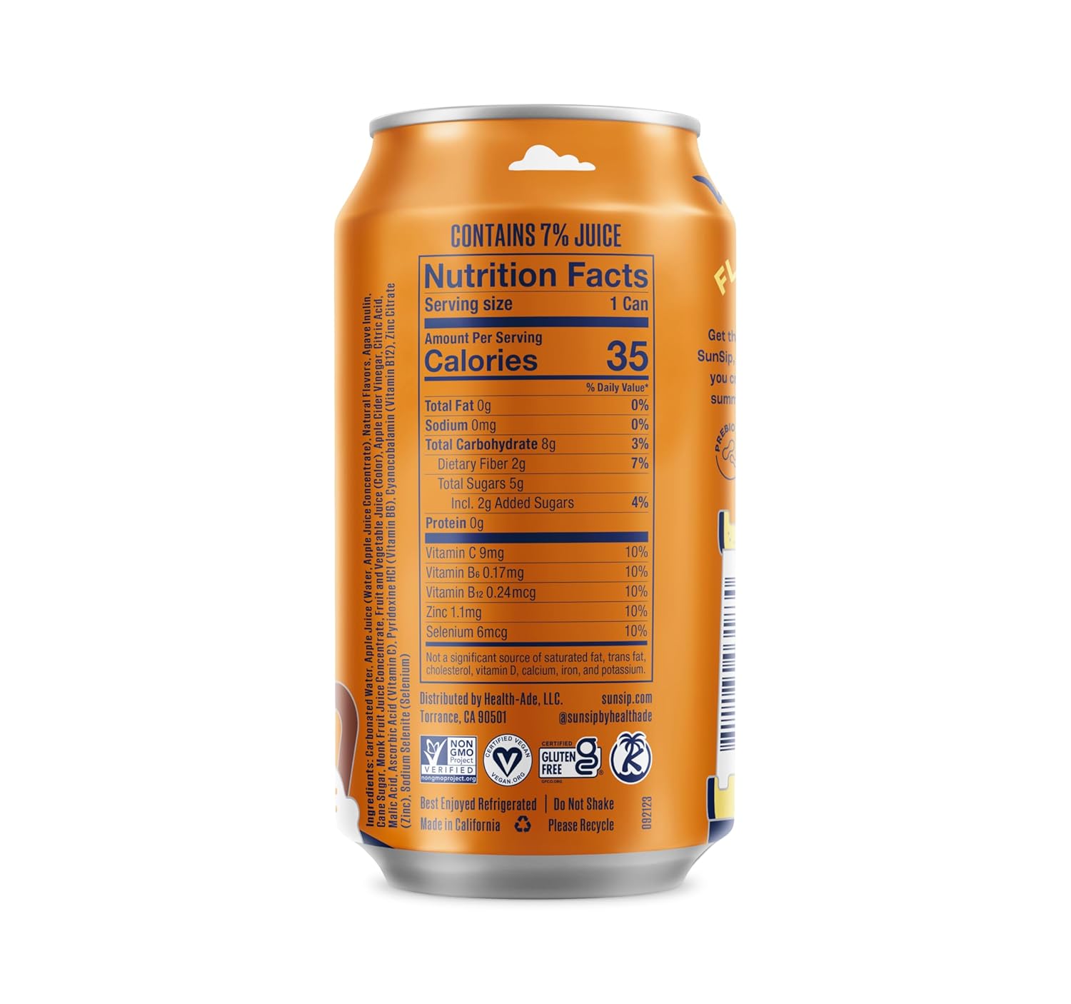 NATURALLY SWEETENED: No stevia in sight! SunSip is sweetened with fruit juice, monk fruit, and cane sugar. Each can contains 6g of sugar or less and 40 calories or less.