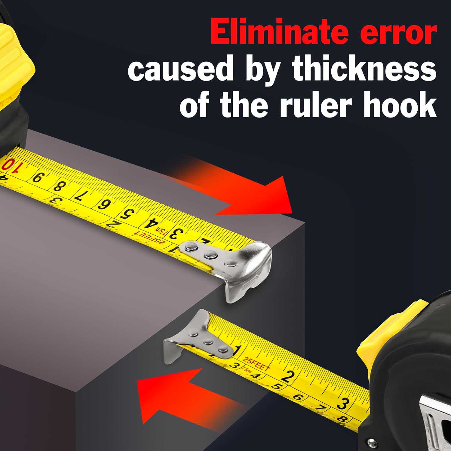 Strong and Reliable Material: The casing of the 25ft tape measure adopts ABS high hardness plastic and TPR elastic rubber, which is wear-resistant and drop-proof, and steel is applied for the ruler belt, which is strong and flexible, not easy to break, and will serve you for a long time