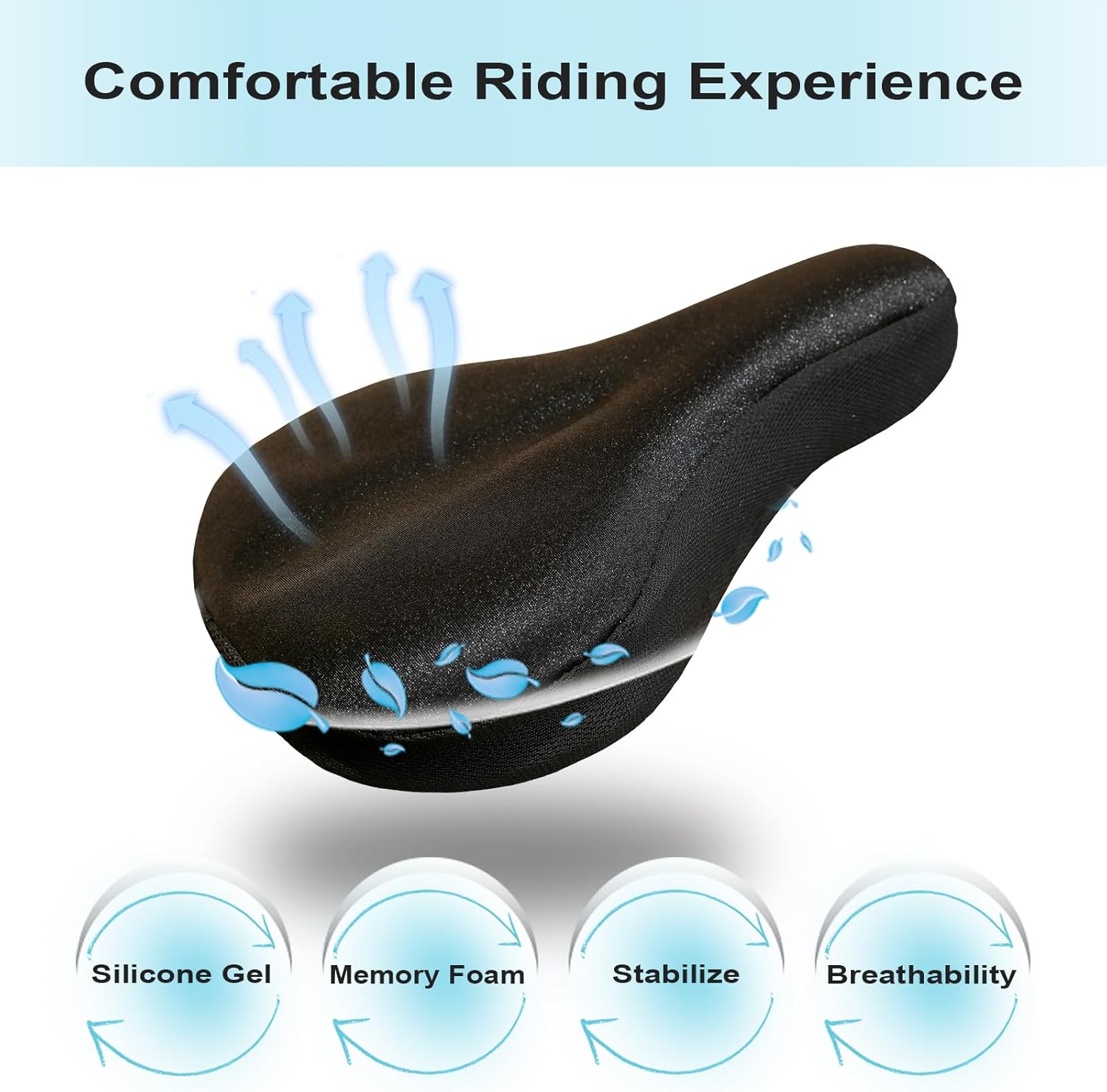 The gel padded bike seat cushion cover offers comfort through a breathables surface that facilitates moisture wicking and heat dissipation, ensuring rapid drying. And the surface anti-slip texture prevents unwanted sliding during rides.