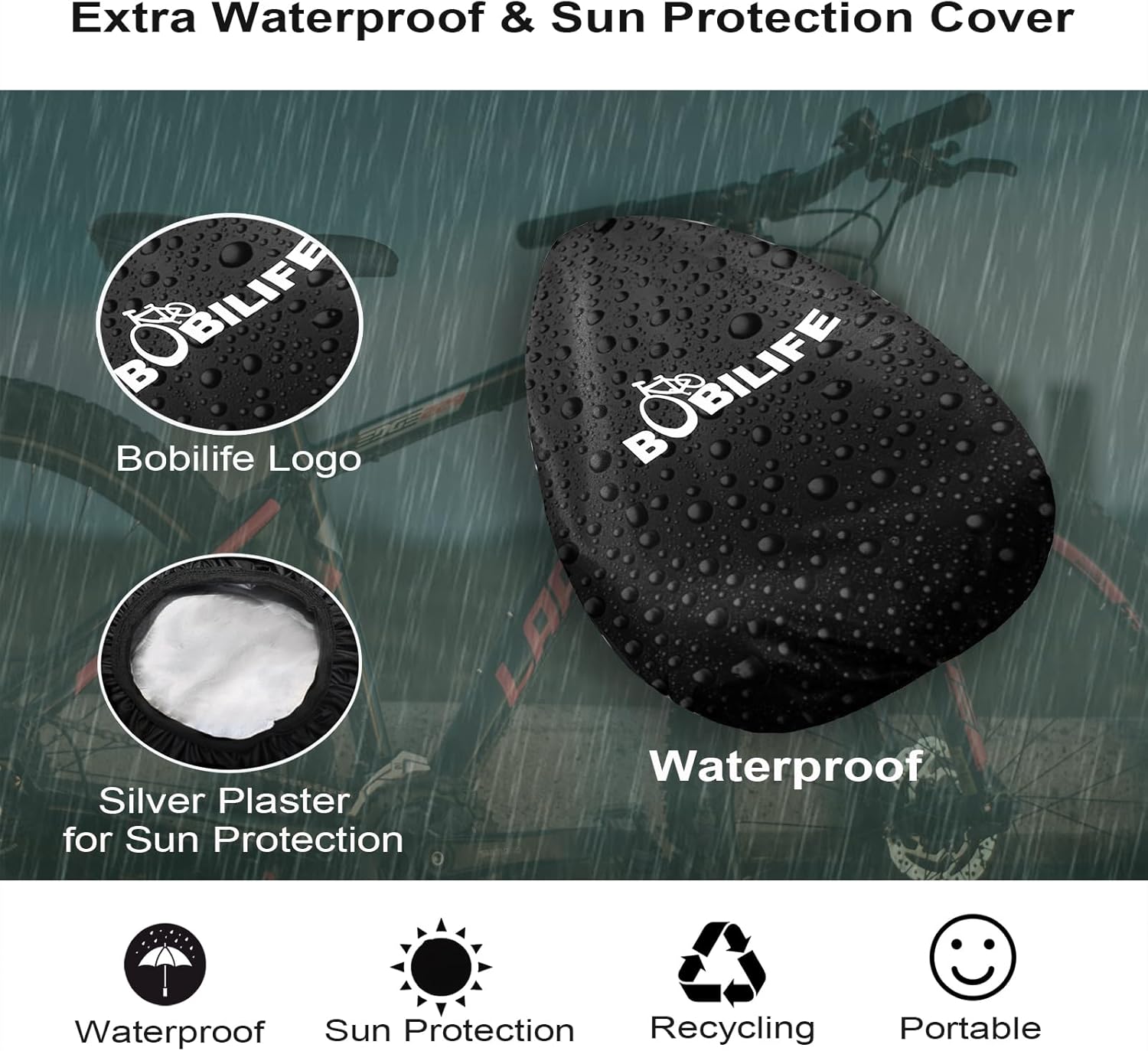 UV Protection Rainproof Cover – And with an additional Bobilife original high quality rainproof cover with the uv protection material, we can ride on the bike seat cushion cover pad directly and freely whether it is raining or sunny.