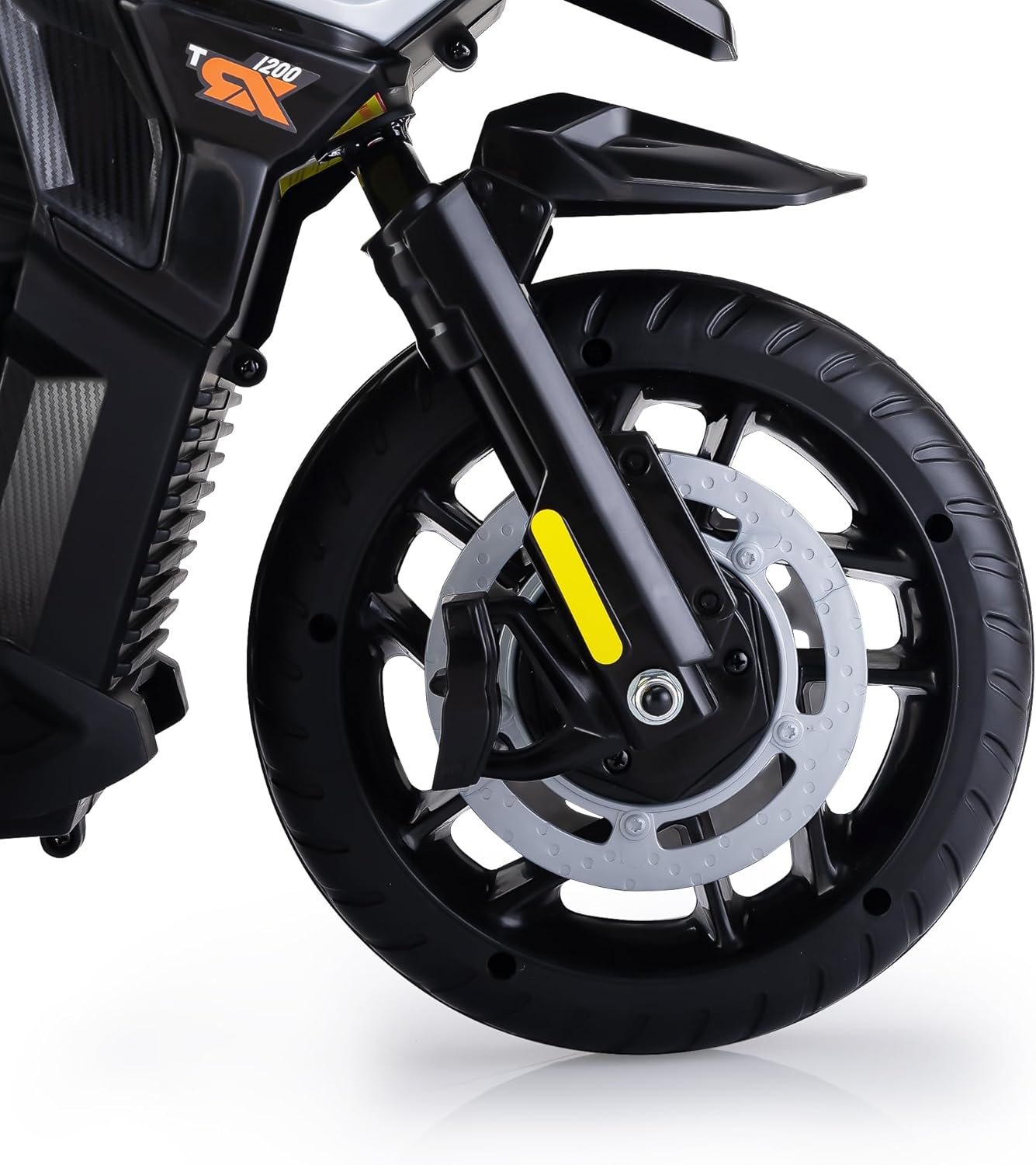 🚦【Safe Riding Experience】: This electric motorcycle is built with a durable frame and body, designed to withstand rough play and outdoor adventures. Thick, sturdy tyres with deep treads provide excellent traction and better balance on asphalt roads or cement floors.