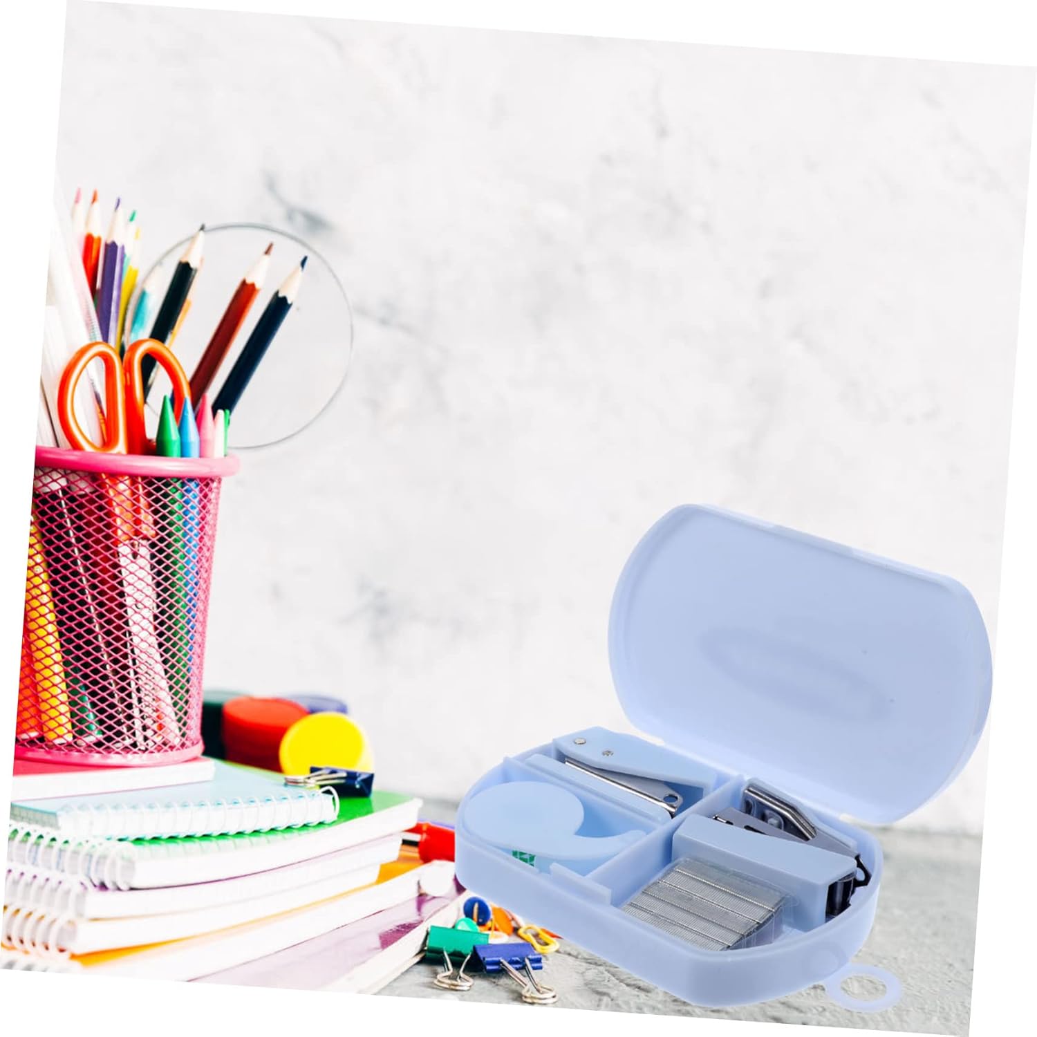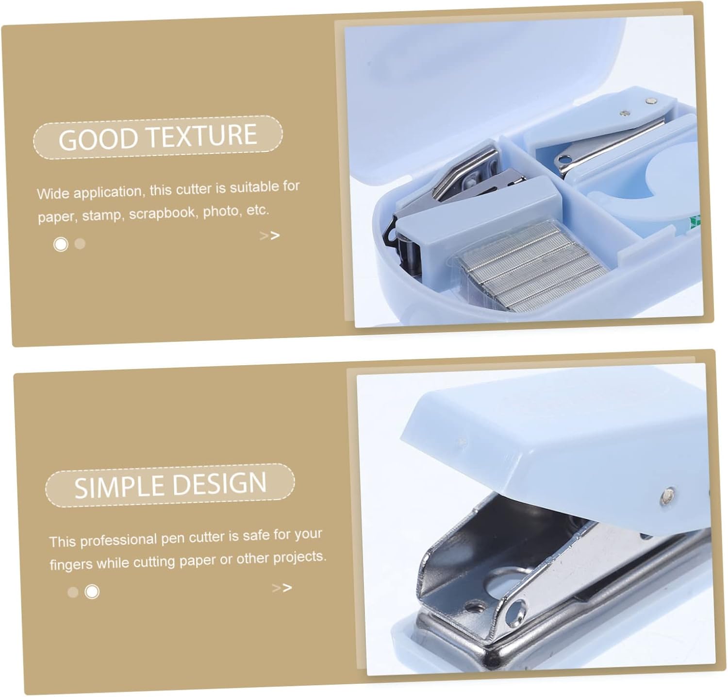 -Suitable for paper products cutting for DIY, scrapbooking and hand accounting. It will bring convenience to your office and home mini stapler and tape dispenser.