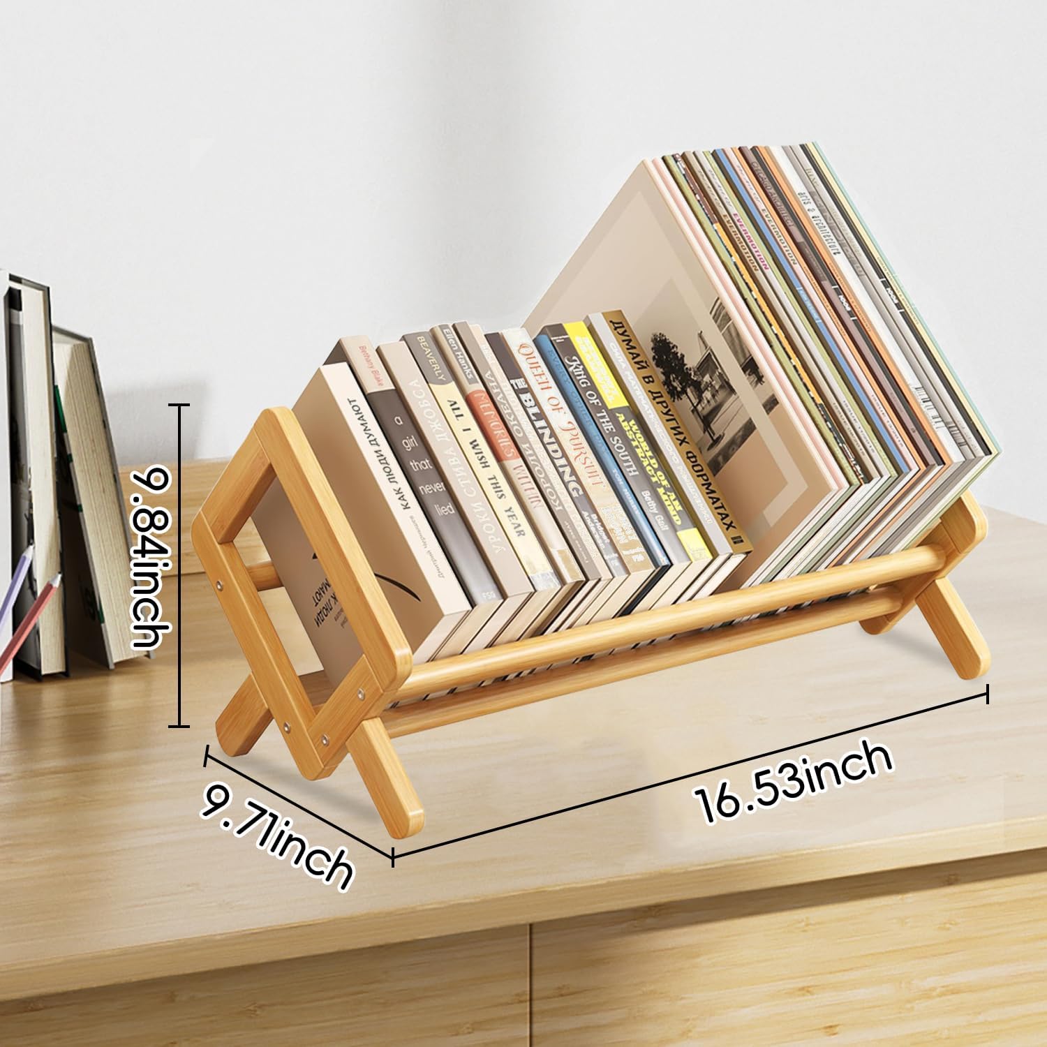 TourKing Bamboo Desktop Bookshelf,Tilted Bookshelf of Magazines, Book Files, Letter Files, CD Display,Storage Rack in Living Room/Home/Office(Log Color, 16″)