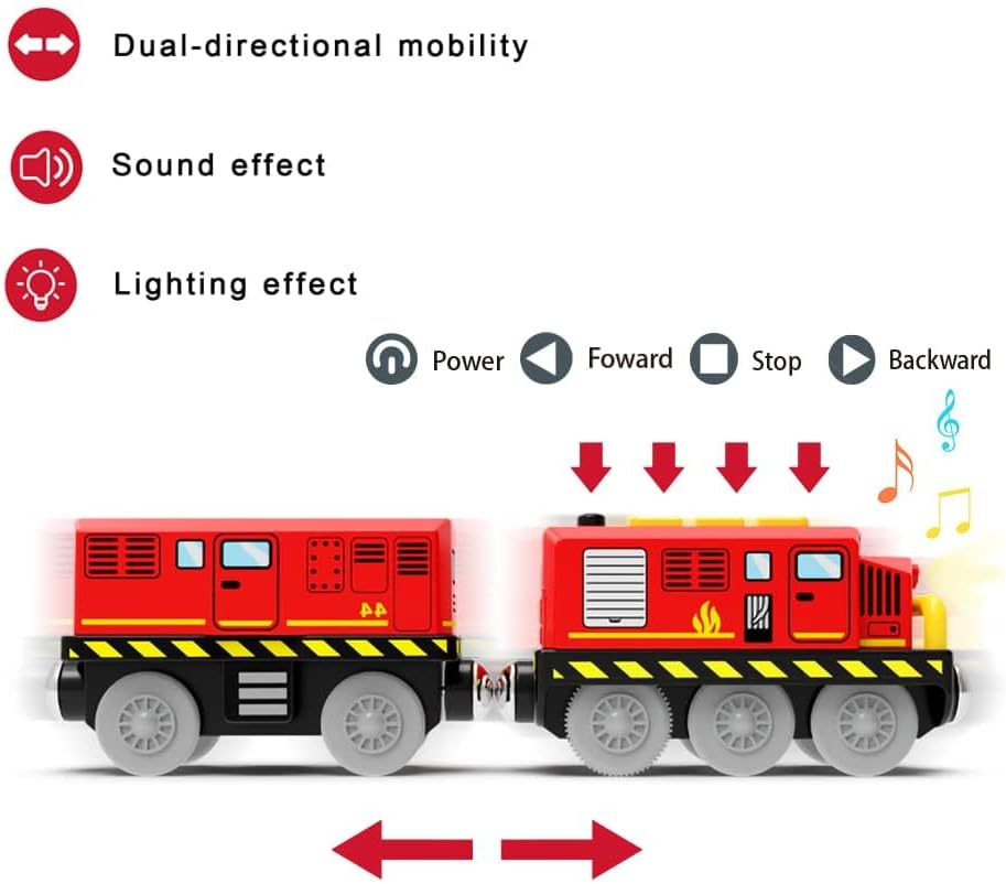 Train Toys Battery Operated Locomotive Trains for Wooden Track, Motorized Train for Toddlers with Magnetic Connection, Compatible with Thomas, Brio, Chuggington, Melissa and Doug