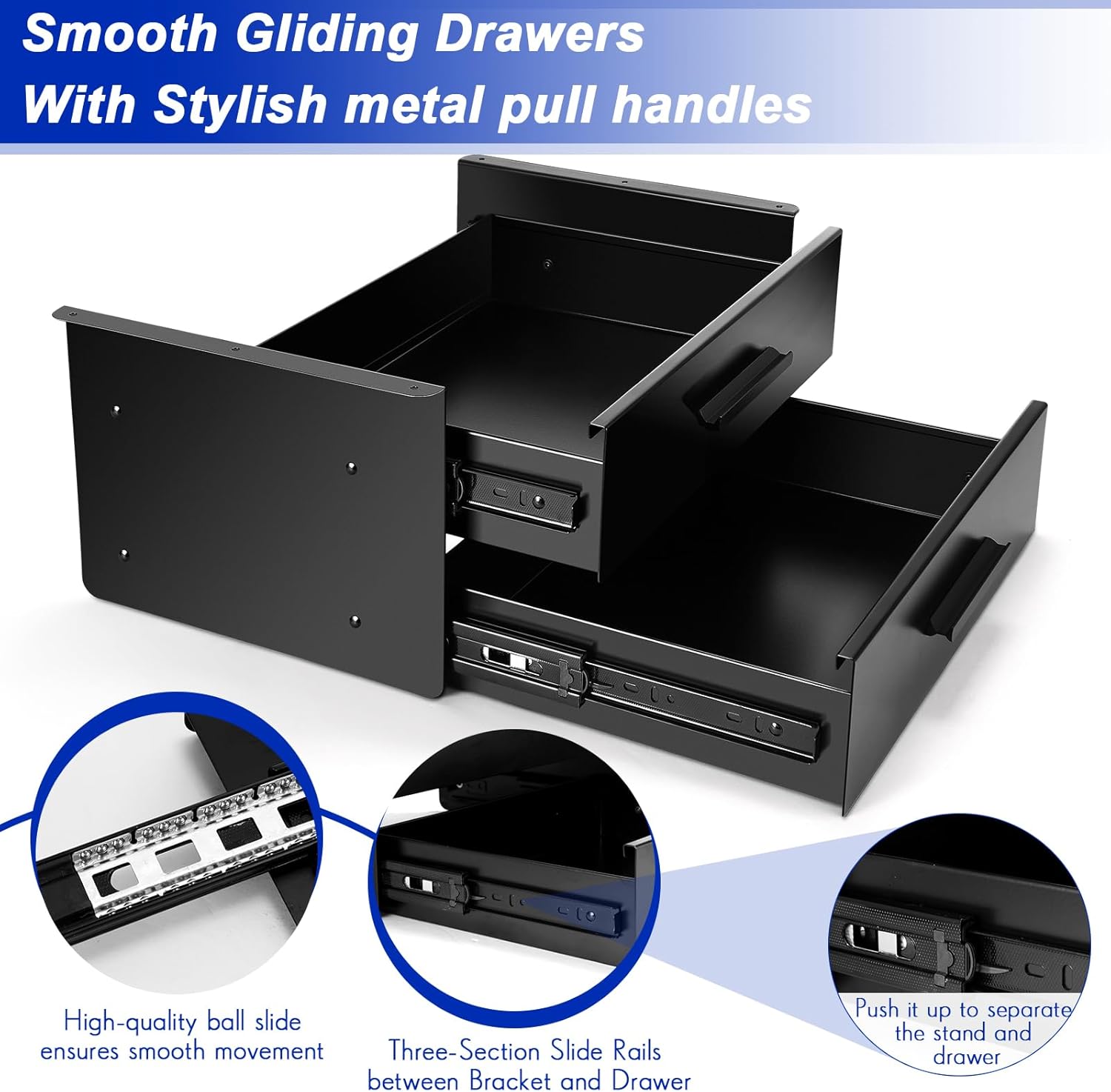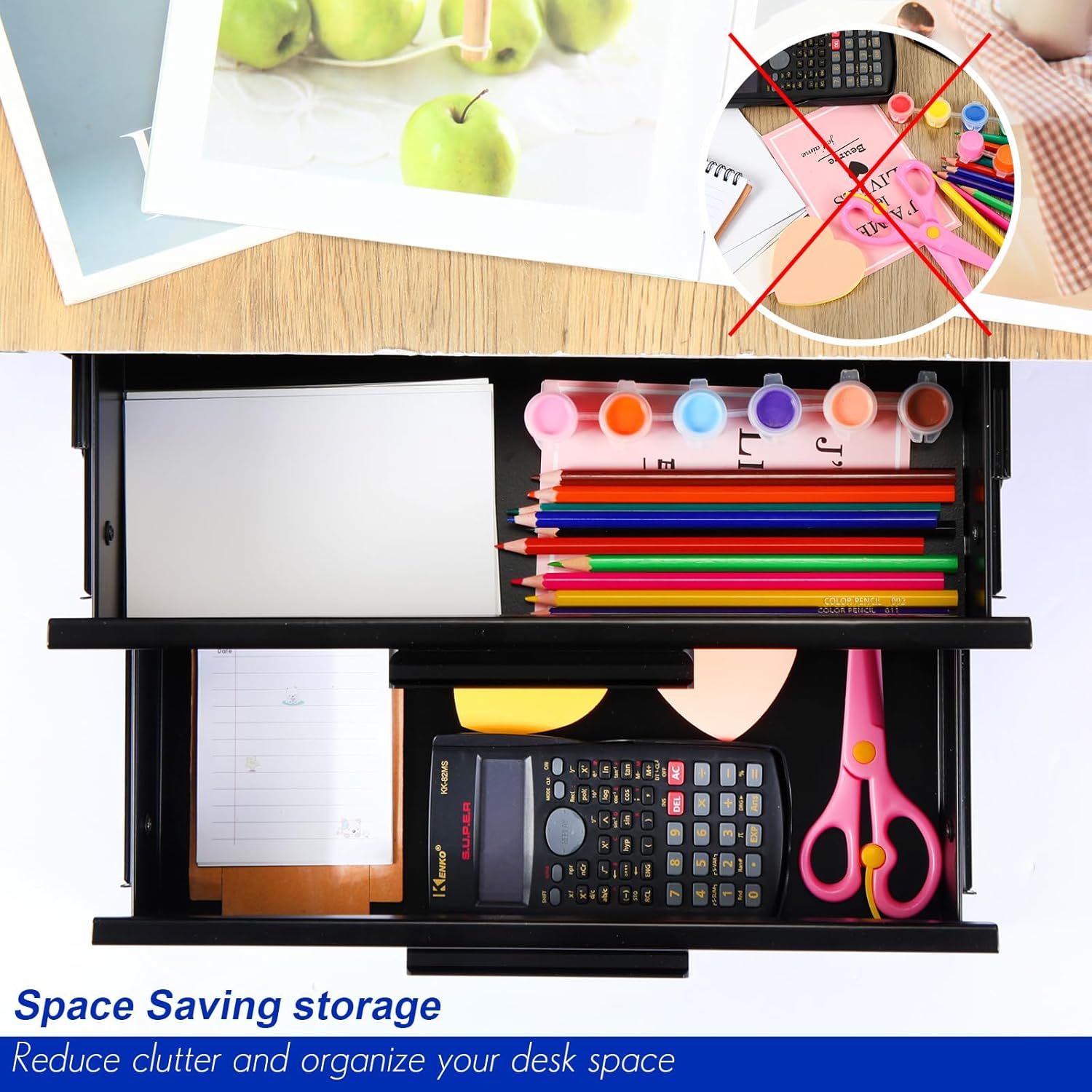 Space Saving Storage Solution: with a holding capacity of up to 30 lbs distributed evenly across the 2 drawers, the office desk drawer provides ample space to store paper, office supplies, writing instruments and electronic equipment; The vertical stacking of the drawers helps conserve space, leaving your work area uncluttered and organized