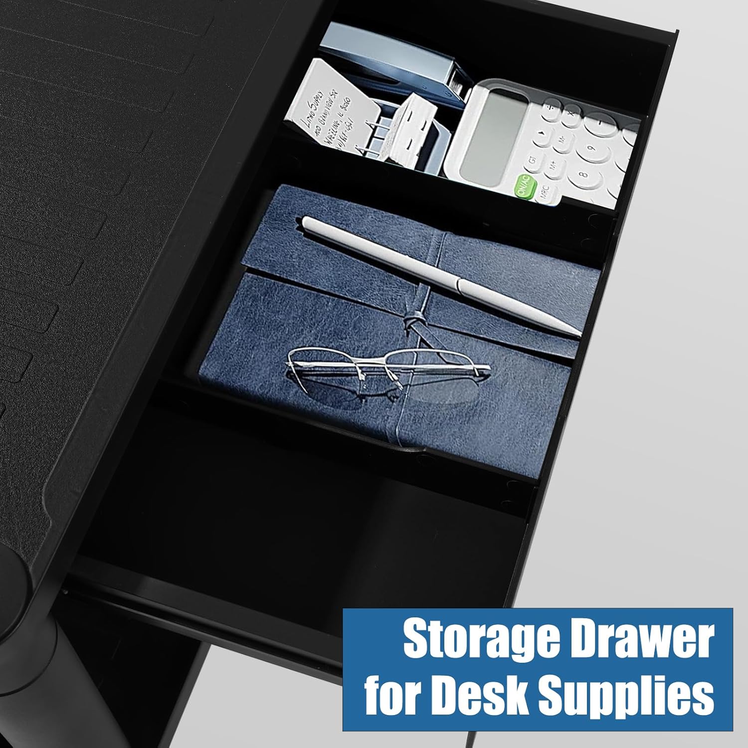 Free Up Valuable Desk Space Maximize your workspace with this 2-tier printer stand under desk featuring built-in storage drawer. The spacious top platform (16.9″ x 12.4″) holds everything from paper to printers, while the compact drawer keeps your office supplies neat and organized.