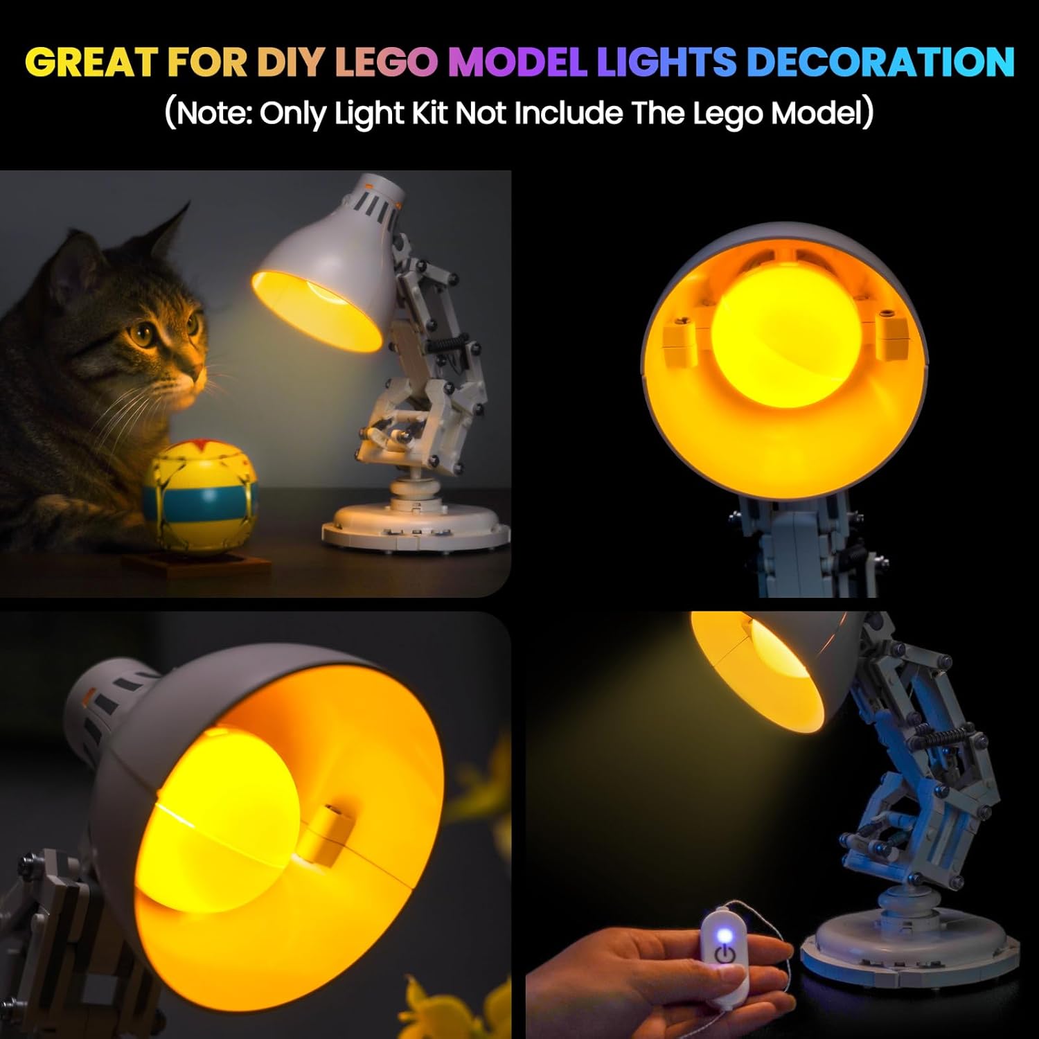 【Upgraded Led Light Kit】❤(𝐍𝐎𝐓 𝐈𝐧𝐜𝐥𝐮𝐝𝐞𝐝 𝐓𝐡𝐞 𝐌𝐨𝐝𝐞𝐥)❤ Hilighting light set is used to light up the building blocks compatible with Lego Pixar Luxo Jr. It enhances the playability of your building set and brings it to life and interesting with vibrant lighting effects