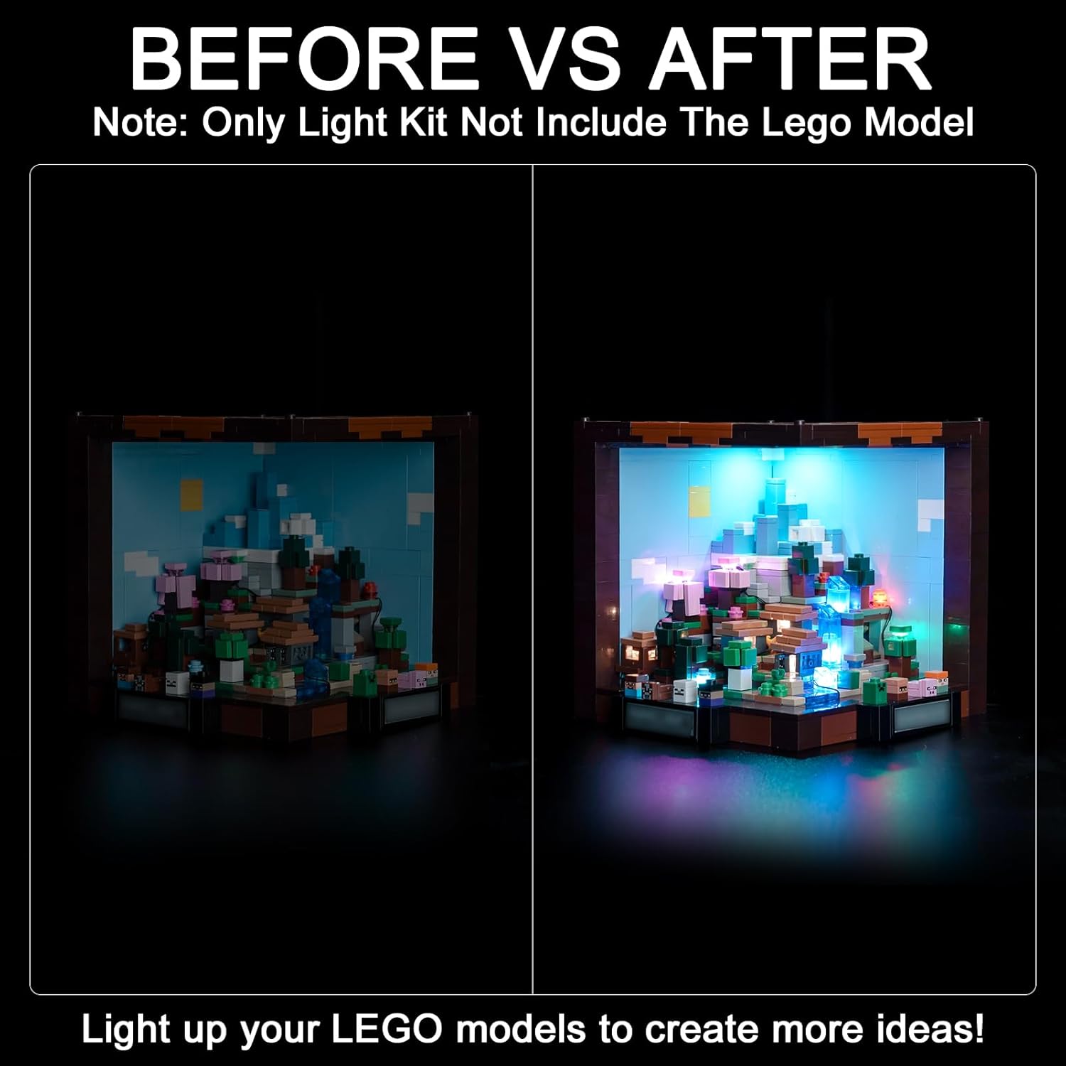 【Upgraded Led Light Kit】❤(𝐍𝐎𝐓 𝐈𝐧𝐜𝐥𝐮𝐝𝐞𝐝 𝐓𝐡𝐞 𝐌𝐨𝐝𝐞𝐥)❤ Hilighting light set is used to light up the building blocks compatible with Lego Minecraft The Crafting Table 21265 . It enhances the playability of your building set and brings it to life and interesting with vibrant lighting effects