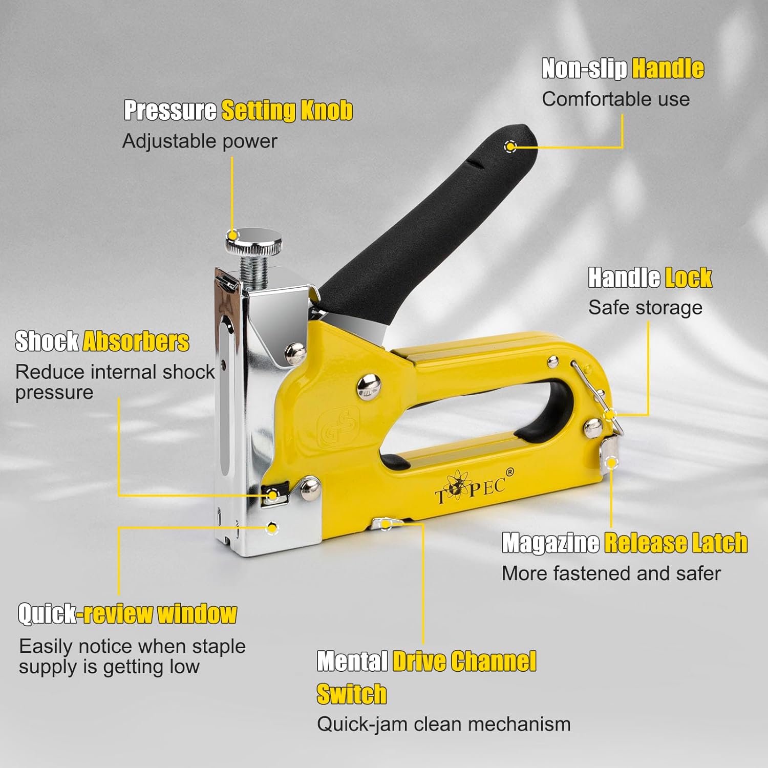 Upholstery Staple Gun, TOPEC 3 in 1 Heavy Duty Staple Guns/Home Use with 900 Staples – Manual Brad Nailer Power for Fixing, Material, Decoration, Carpentry, Furniture, Wood, DIY