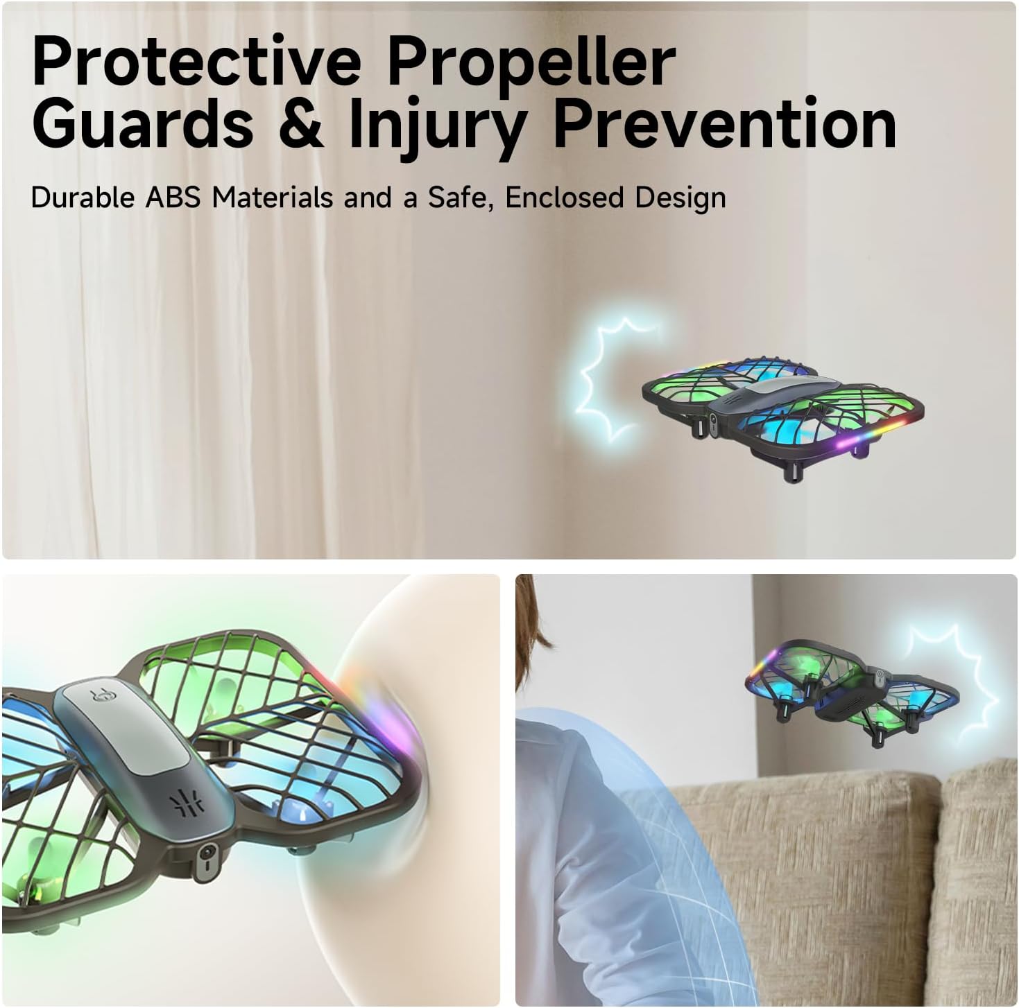 FULL PROTECTION: The M10C mini drone is designed with safety in mind, featuring four durable propeller guards to ensure a safe flight and protect child from injuries caused by spinning propellers. Made from high-quality ABS material, it’s built to withstand bumps and crashes, making it the perfect choice for kids and beginners