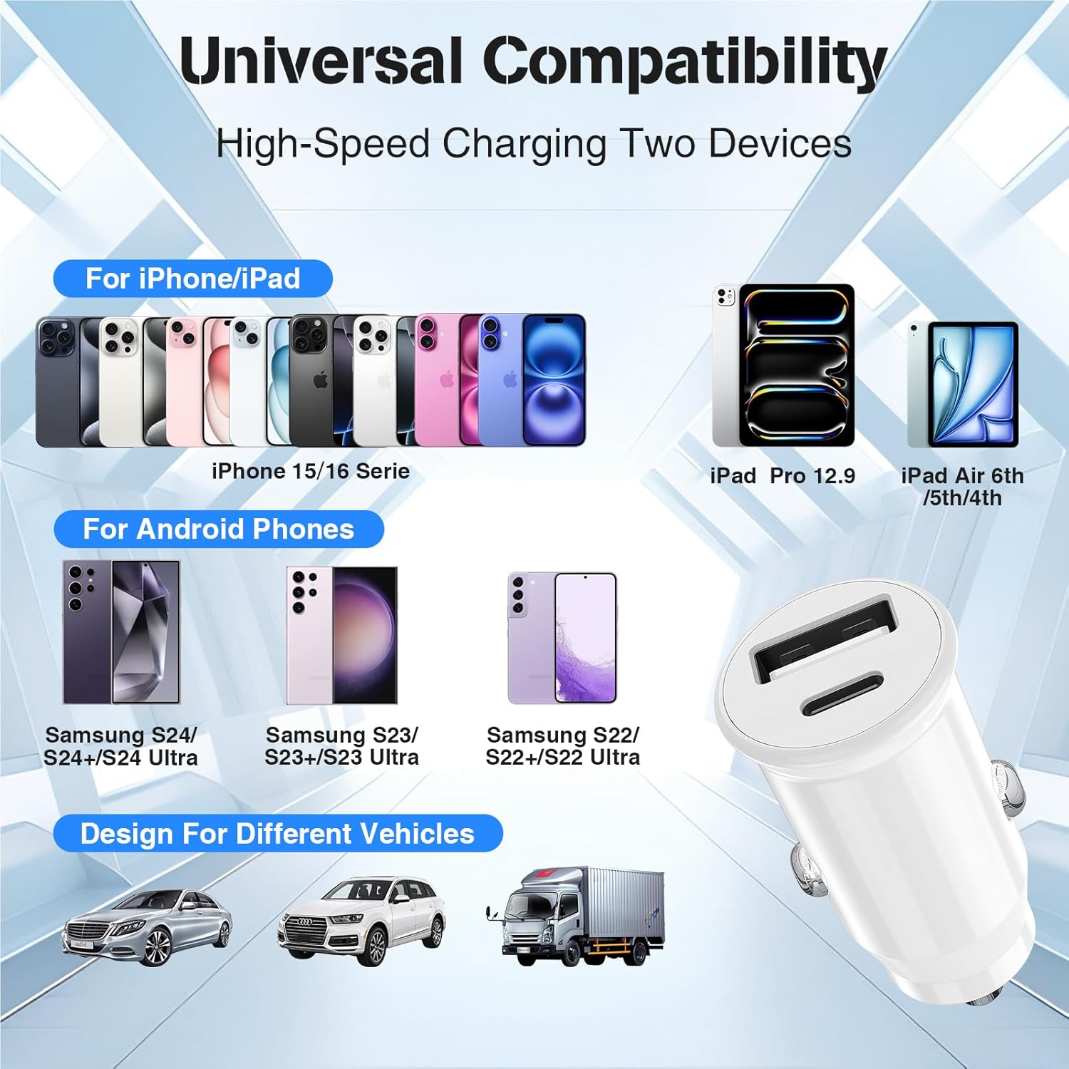 【Durable & Reliable Car Charger】:Built with high-quality materials, our car charger is designed to last. The robust construction ensures it can withstand daily wear and tear, while the sleek white color adds a modern touch to your car’s interior. The included cables are also designed for durability, providing a reliable connection every time you plug in your device