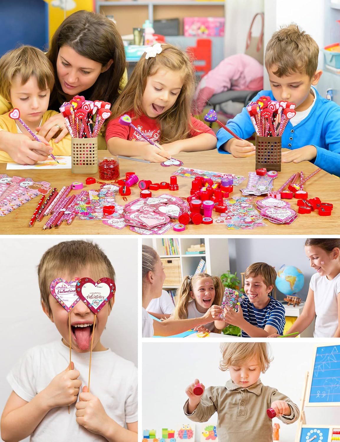 【High Quality and Safety】The Valentines gifts for kids are made of plastic, wood and paper, which are durable and friendly for kids using and playing. They are very safe for kids, which will also give your children a wonderful and unforgettable Valentines Day.
