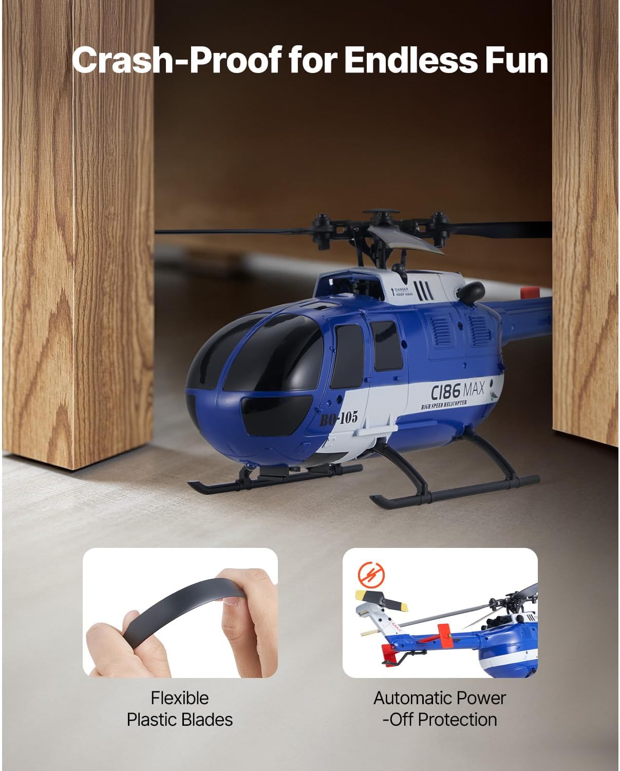 Easy to Master: The RC helicopter features one-key takeoff and landing that makes flying simple, even for beginners. With added features like side flying, hovering, and route flight, it opens up a wider range of fun flying options.