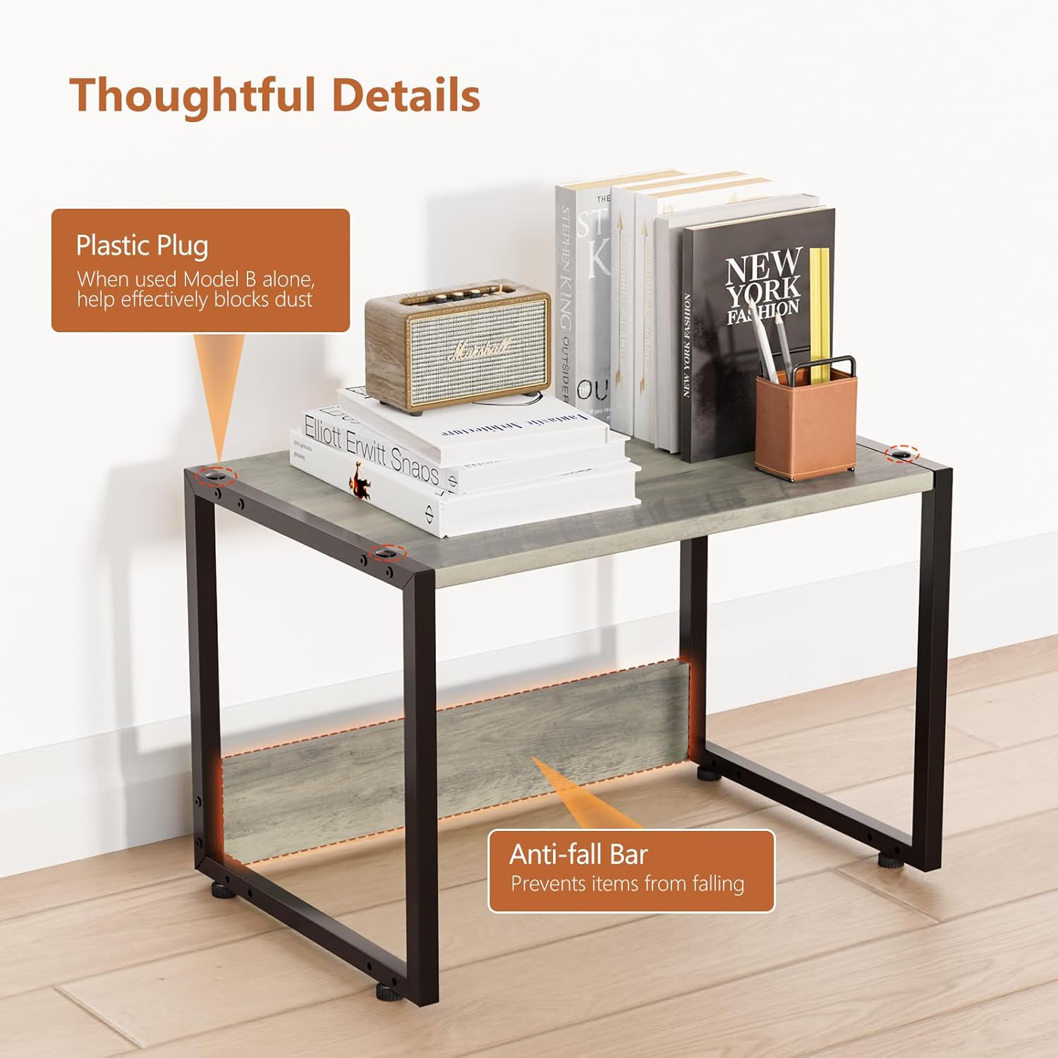 【Modular DIY Assembly】Calling all DIY lovers! Buy multiple VINGLI home printer stands or pair with model A for endless stacking possibilities. Create your dream storage space. Silicone tube plugs? We’ve got you covered for dust – proof and anti – slip single – unit use.
