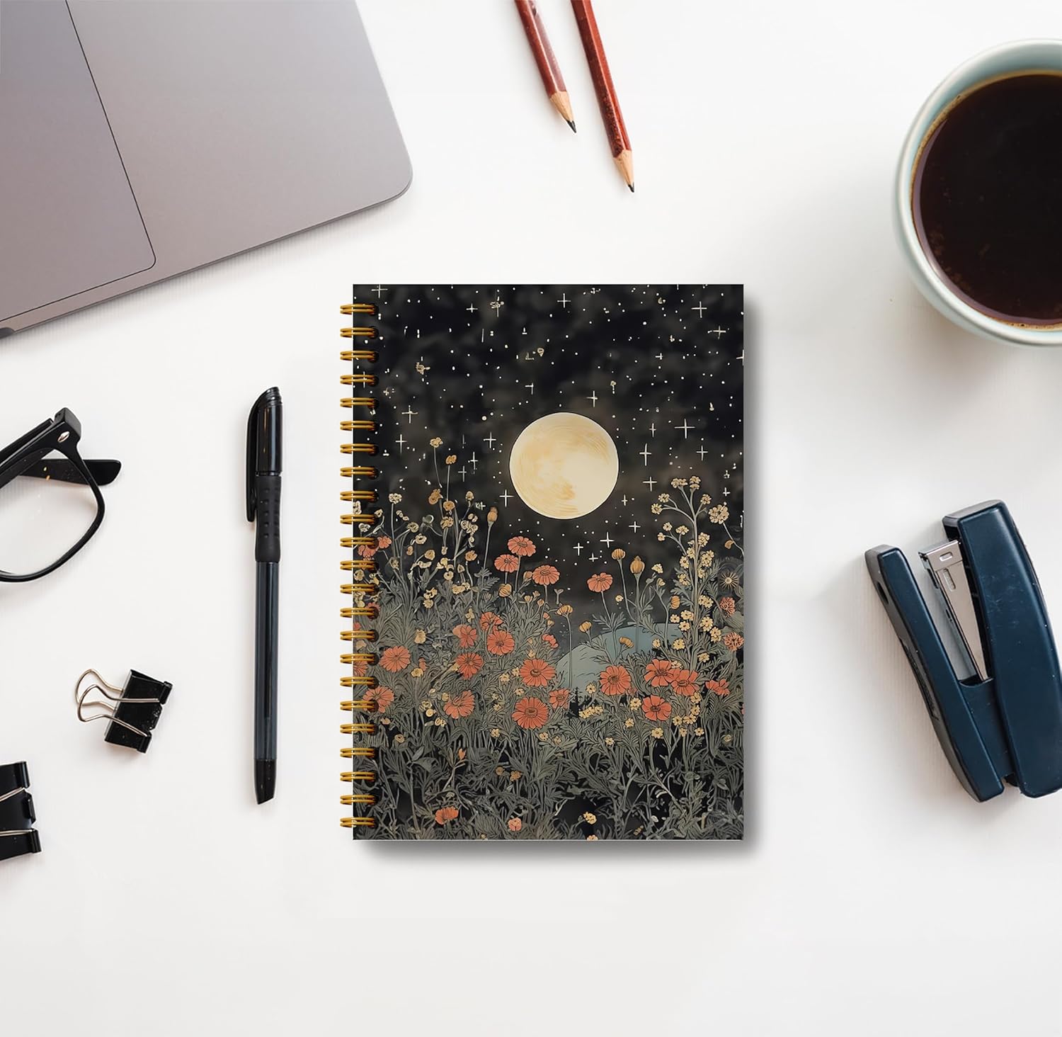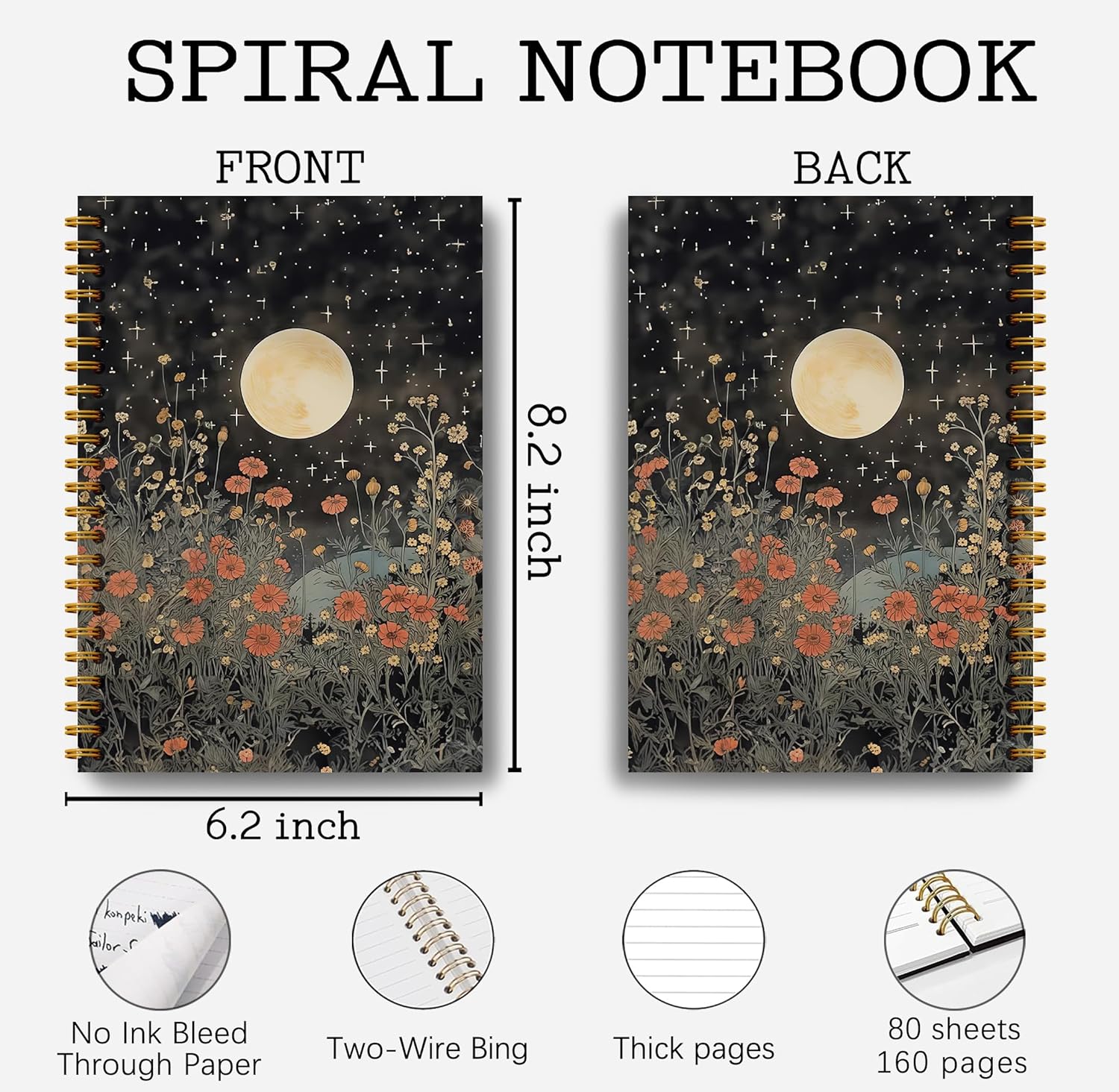 Vintage Witch Notebook Journal – Moon Notebook Journal 5.5×8.3, Floral Witch Gifts, Gothic Spiral Journal Notebook, 164 Pages, Spiral Witch Journal, Journals for Writing with Sun’s and Moons