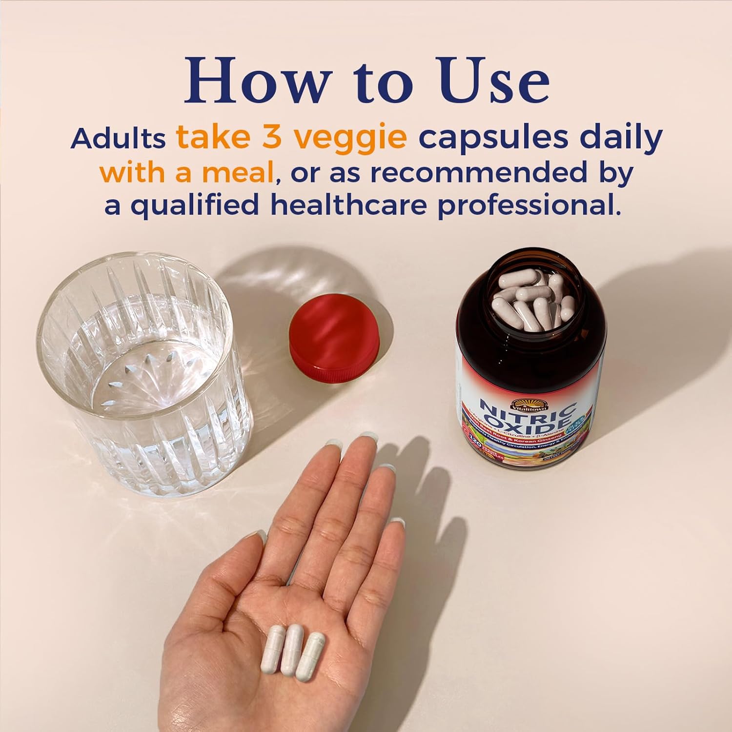 PURITY & QUALITY: Vitalitown Nitric Oxide Capsules are intended for both men and women free of artificial fillers, flavors, preservatives, and additives. All products are 100% vegan, non-GMO, and contain no gluten, dairy, soy, eggs, fish, shellfish, tree nuts, or peanuts.