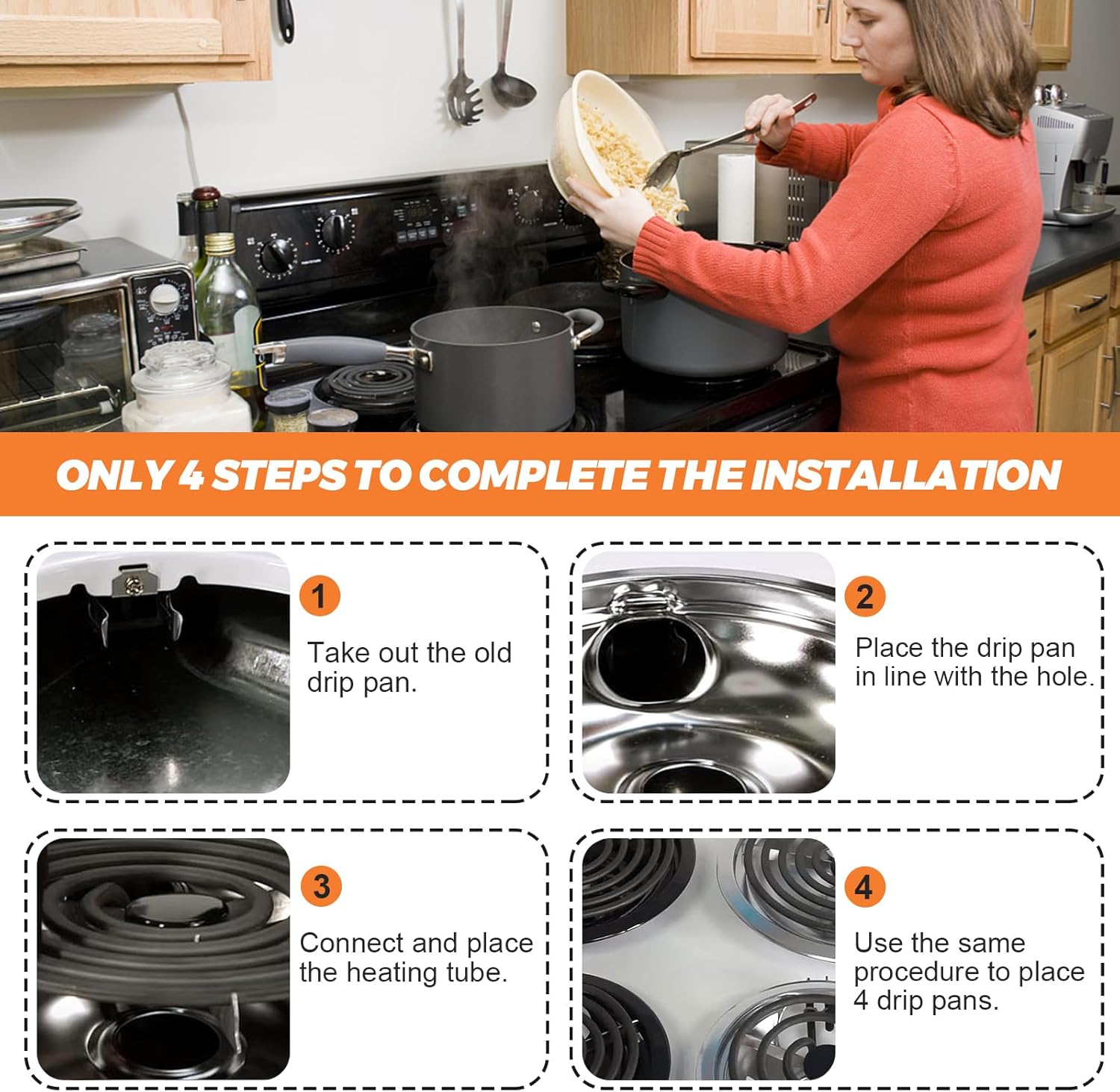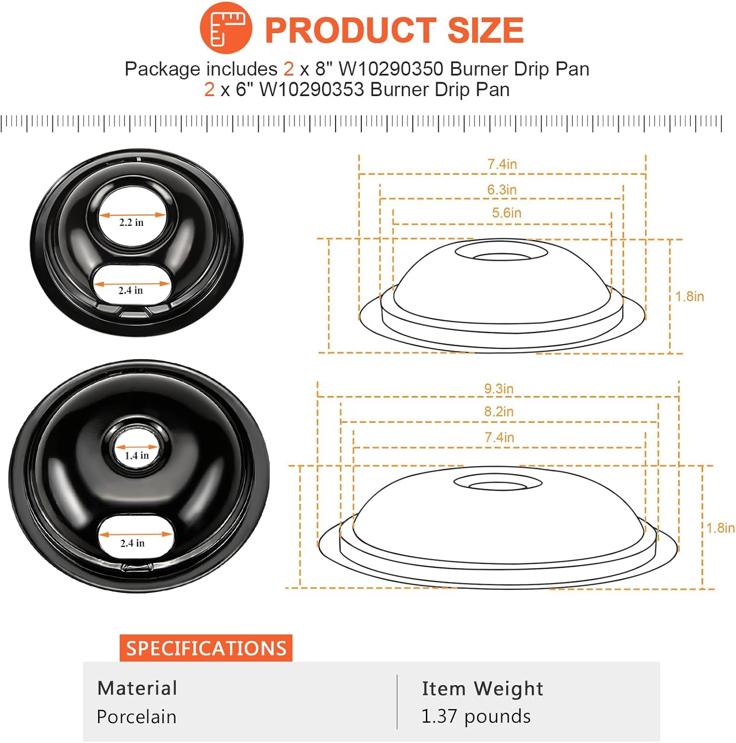 【EASY INSTALLATION】– W10290350 and W10290353 drip bowls can be installed under 8 “and 6” burner elements. Power off and put on working gloves before installation. Wait until the surface is cool to the touch before installing this part. No tools are required for this process. You can find videos on YouTube on how to change parts, it’s not hard at all