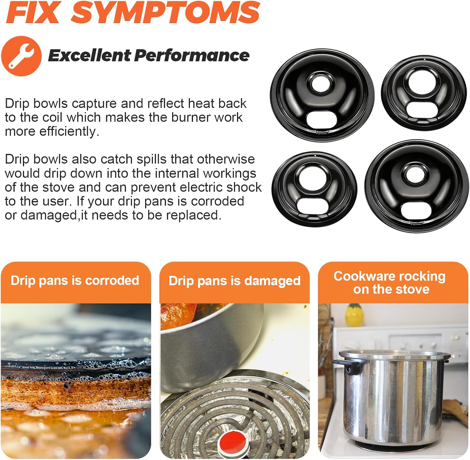 【90 DAYS GUARANTEE】– The W10290350 W10290353 burner electric range porcelain drip pan bowls supports 90 days after-sales service. ▶W10290350 W1029035 Drip pans have a purpose beyond looking attractive. Drip bowls capture and reflect heat back to the coil which makes the burner work more efficiently. Drip bowls also catch spills that otherwise would drip down into the internal workings of the stove and can prevent electric shock to the user