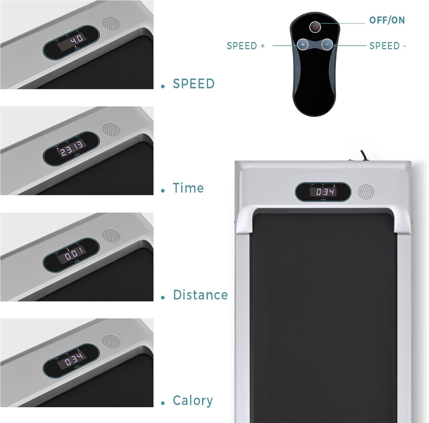 2.25 HP Powerful Motor Walking Pad: The under desk treadmill with a 2.5 HP powerful quiet Motor,the electric treadmill is perfect for running, jogging, and walking in the comfort of your home. With a durable steel frame and multi-layer shield design, the under desk treadmill’s shock-absorbing and noise-reducing, making your running quieter, safer and more comfortable.