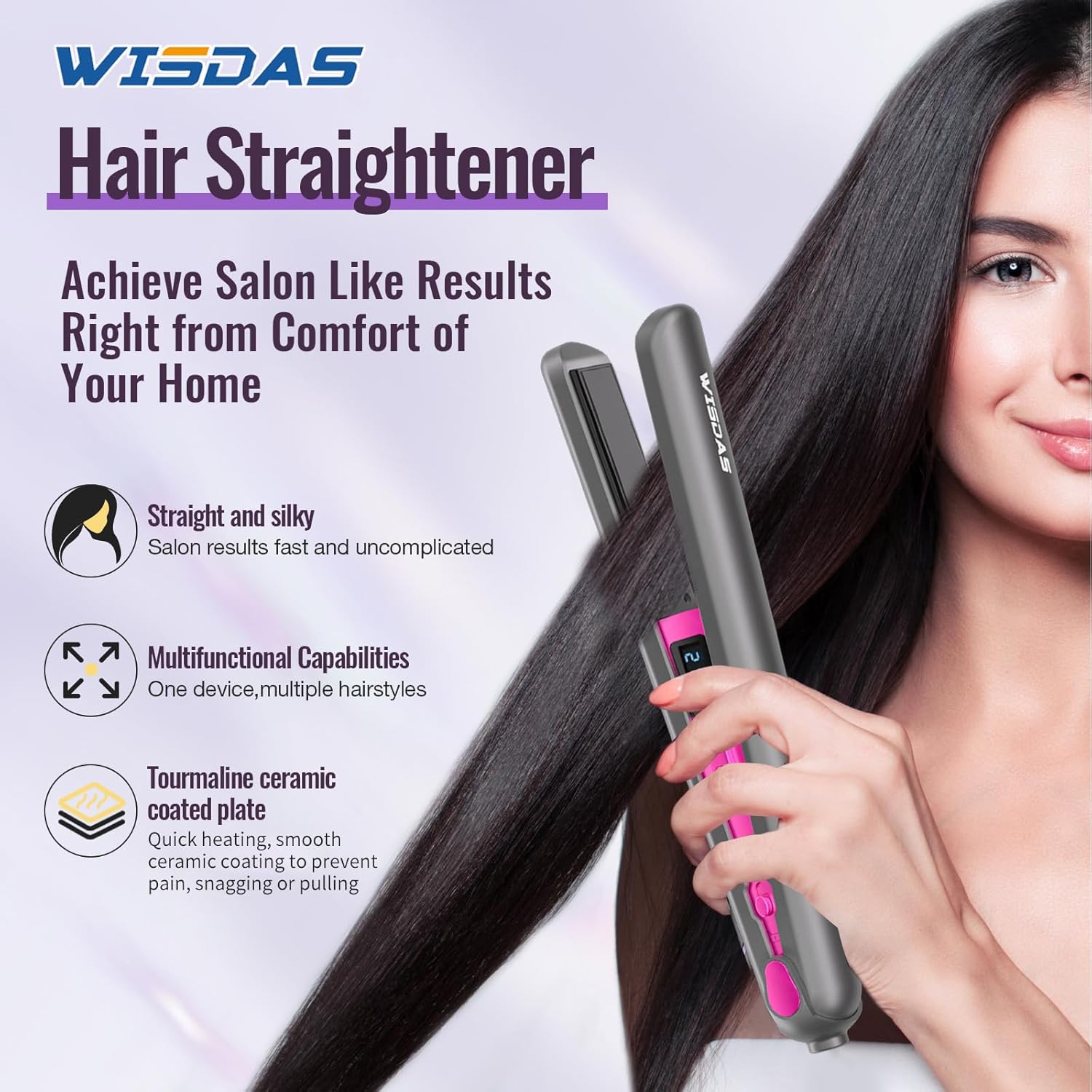 Suitable for most hair types, this cordless straightener has an adjustable temperature of 320°F-410°F ,and 6 precise temperatures to adjust to fully protect your hair