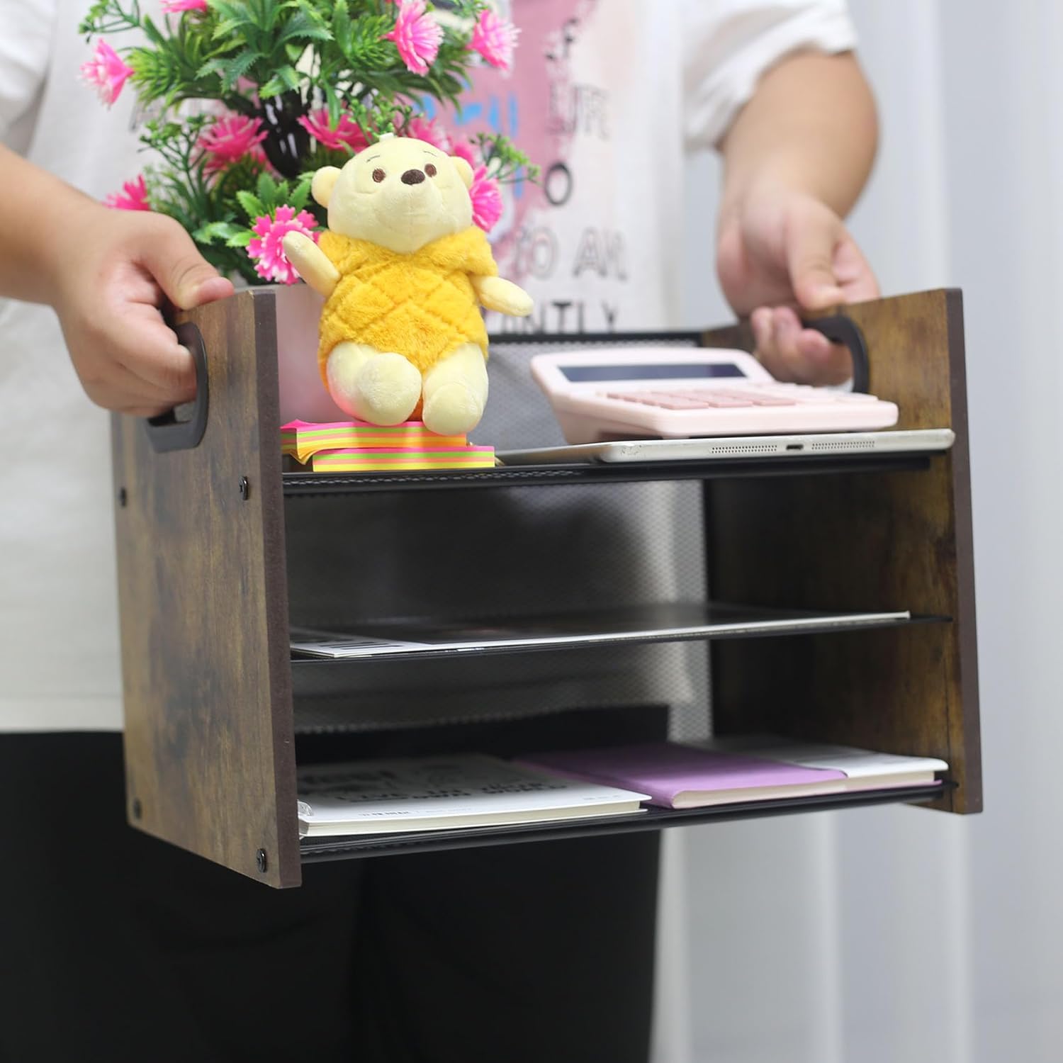 【Wooden Desk Organizer】 Made of iron frame and durable wood boards, ensuring long-lasting durability. Enjoy a clutter-free and efficient workspace with our paper organizer storage. The different compartments and trays provide ample space for different categories, allowing for easy access to your important documents.
