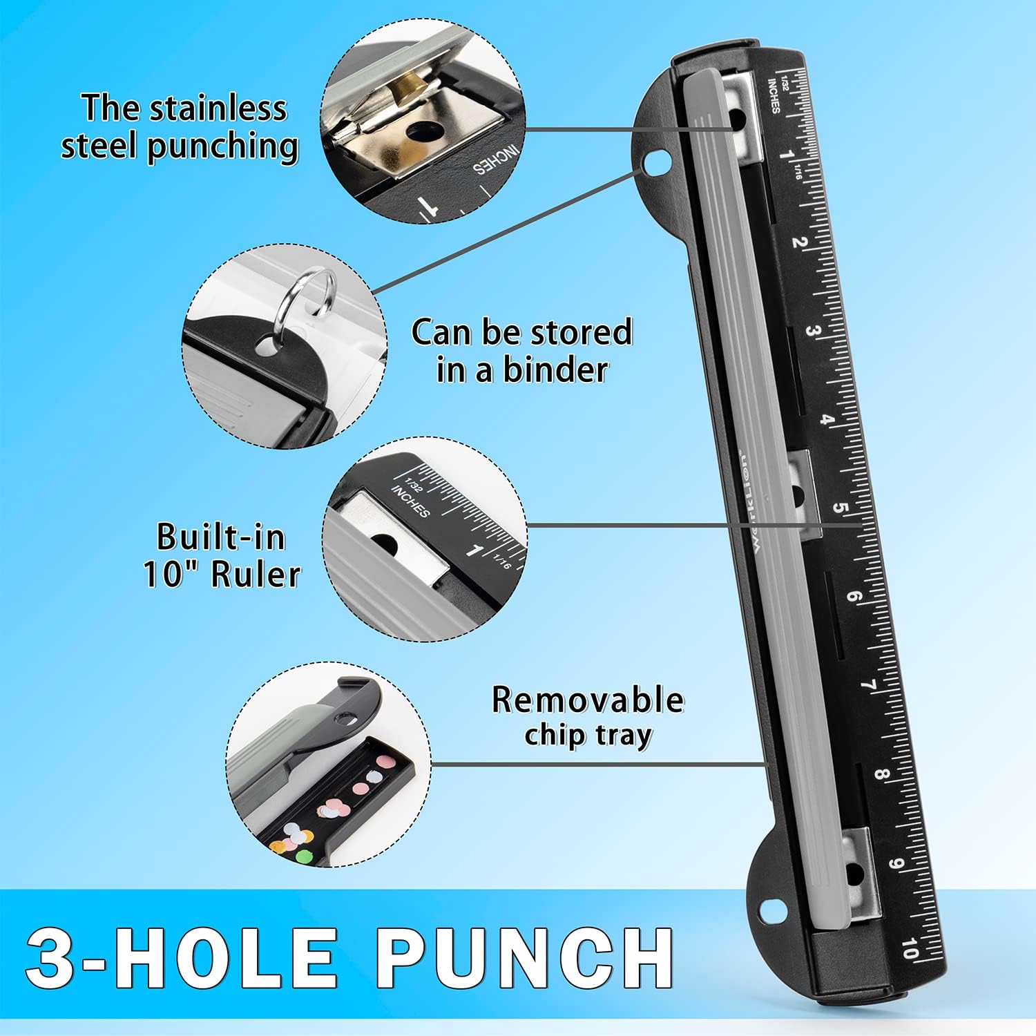 WorkLion 3 Ring Hole Punch for Binder, Portable Puncher, Office Assistant, Black