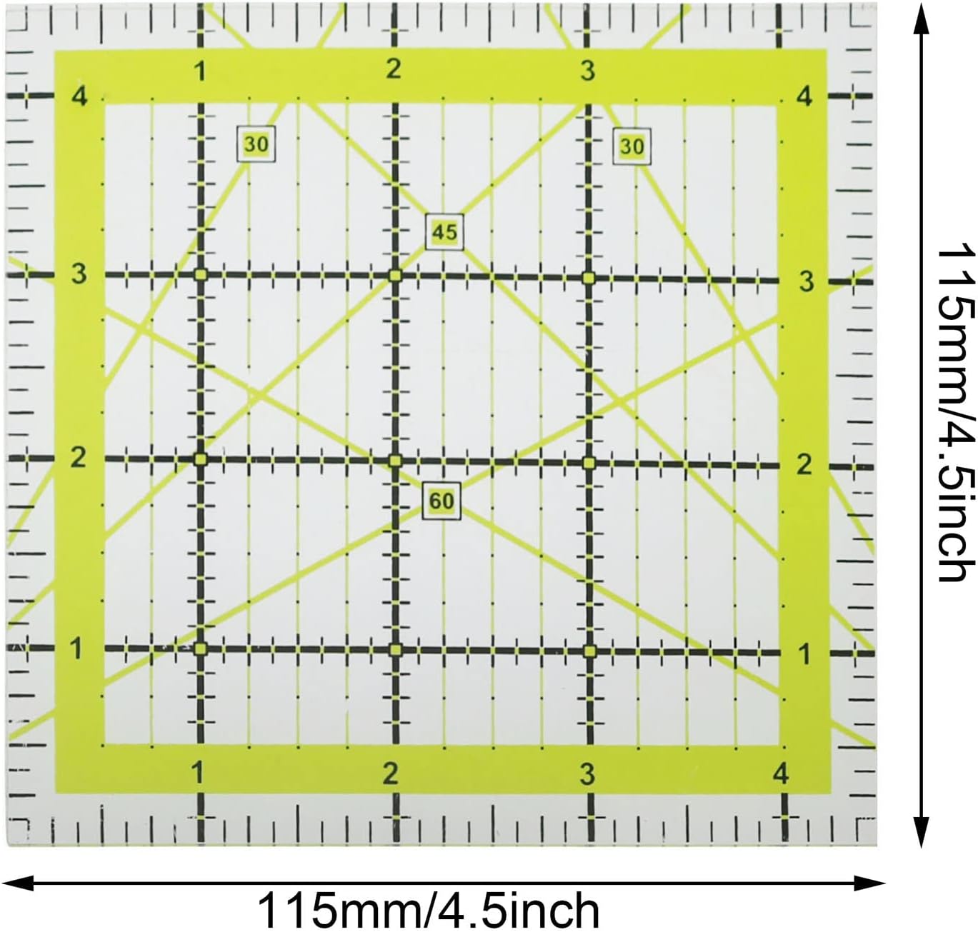 XGNG 4.5 x 4.5Inch Quilting Ruler Square Non-Slip Acrylic Quilting Rulerfor Quilting, Sewing and DIY Crafts Fabric Cutting Ruler
