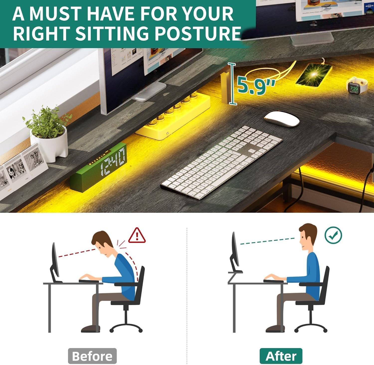 YITAHOME L Shaped Desk with Power Outlets & LED Lights
