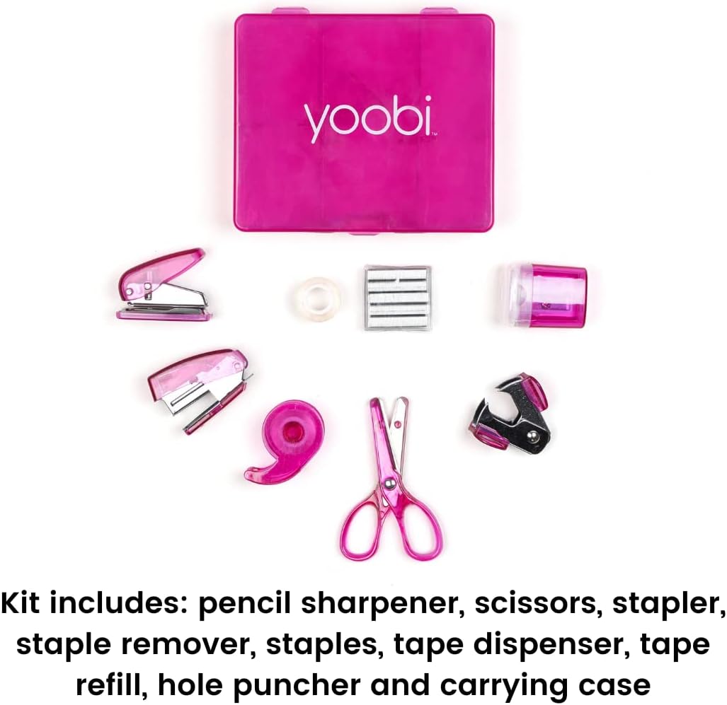 Yoobi: Pink Mini Office Supply Kits – Mini School Supplies Kit – Includes Scissors, Mini Stapler, Staple Remover, Staples, Tape Dispenser & More – Cute School, Home or Office Supplies Kit (2-Pack)