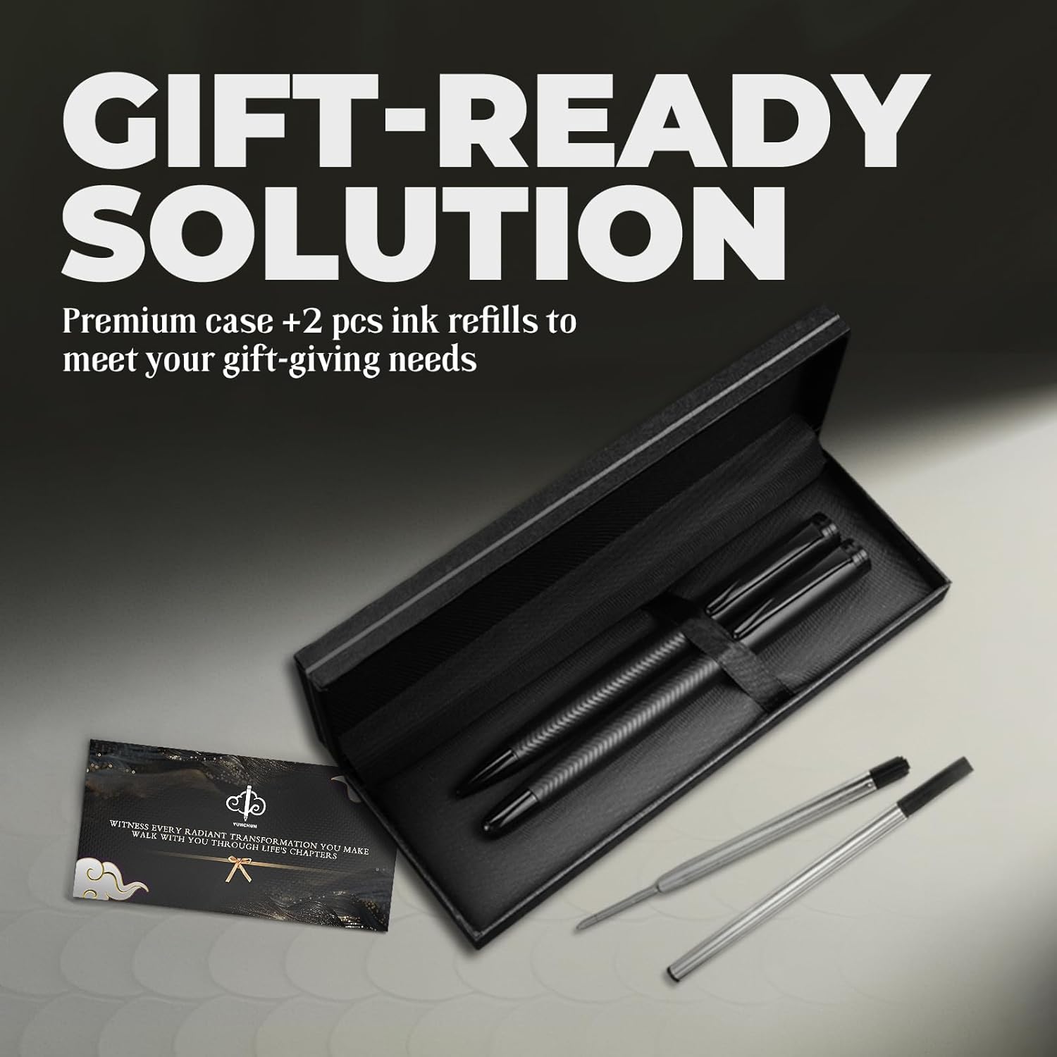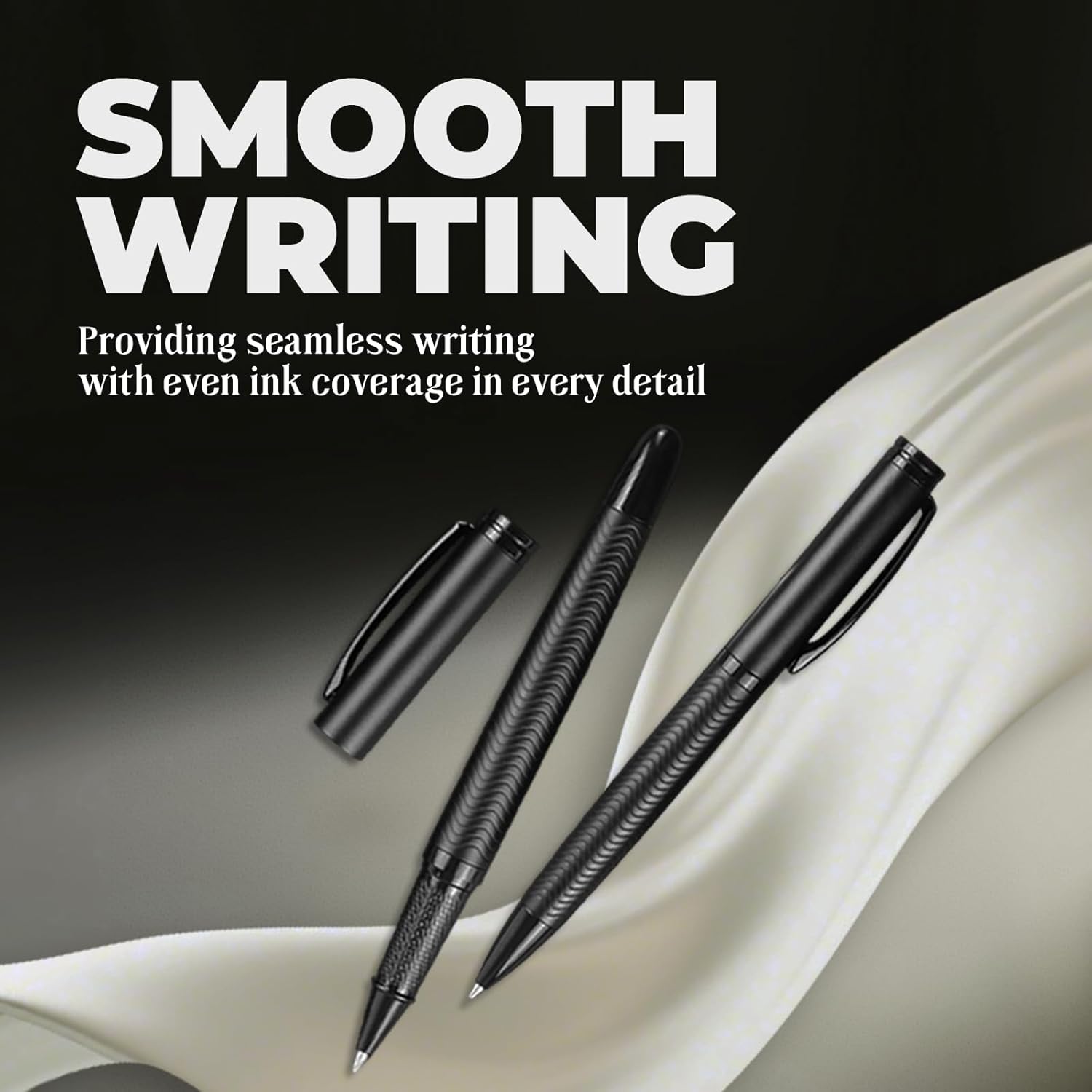 YUNCHUN 2PCS Ballpoint + Rollerball Pens, Gel Liquid Ink Pen, Fancy Cool Ball Pen for Smooth Writing, Medium Point Metal Pen with 2 Extra Refills, Nice Pen Gift Set for Men & Women, Wave Stripe Black