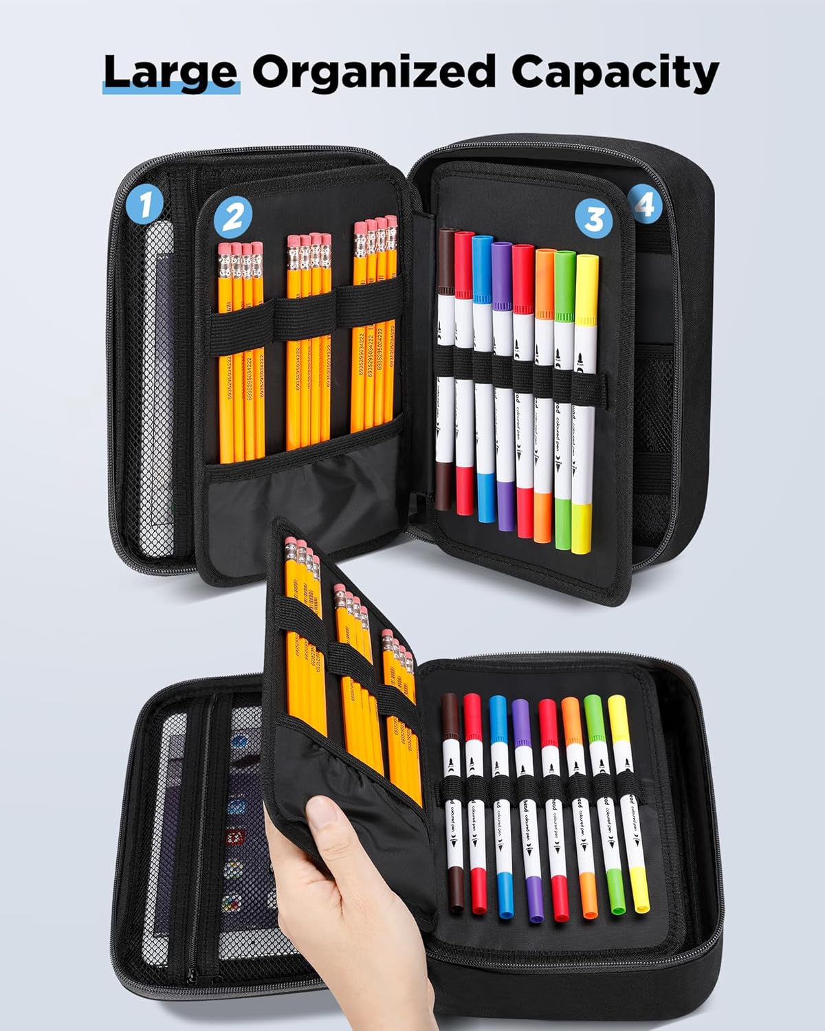 Zannaki Big Capacity Storage Pouch Marker Pen Pencil Case Simple Stationery Bag Box Art Tool & Sketch Storage Boxes for Bullet Journal Middle High School Office College Student Girl Women Adult Teen