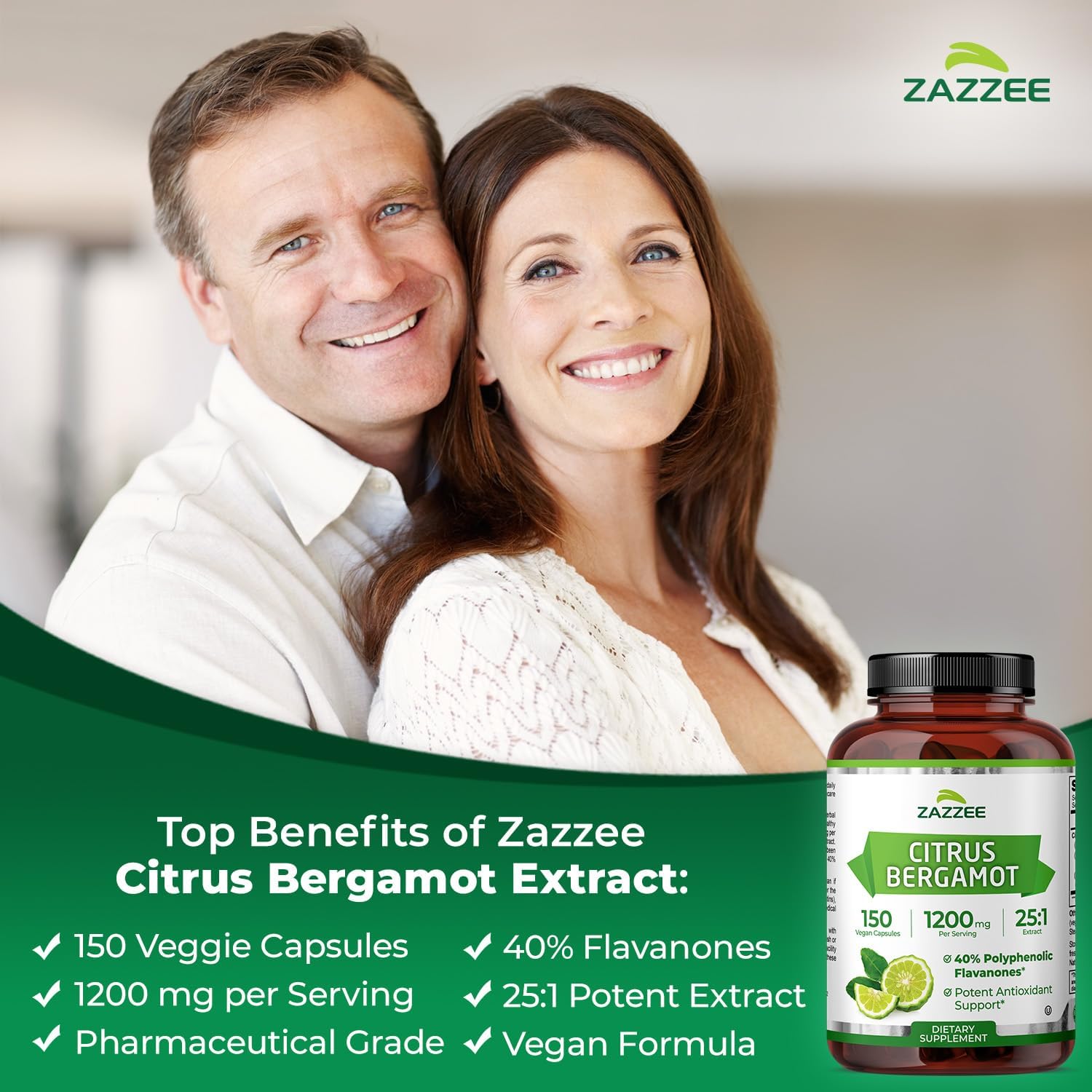 Zazzee Citrus Bergamot 25:1 Extract 1200 mg, 40% Polyphenolic Flavanones, 150 Vegan Capsules, Kosher, Concentrated and Standardized 25X Potency, Non-GMO and All-Natural, Made in The USA