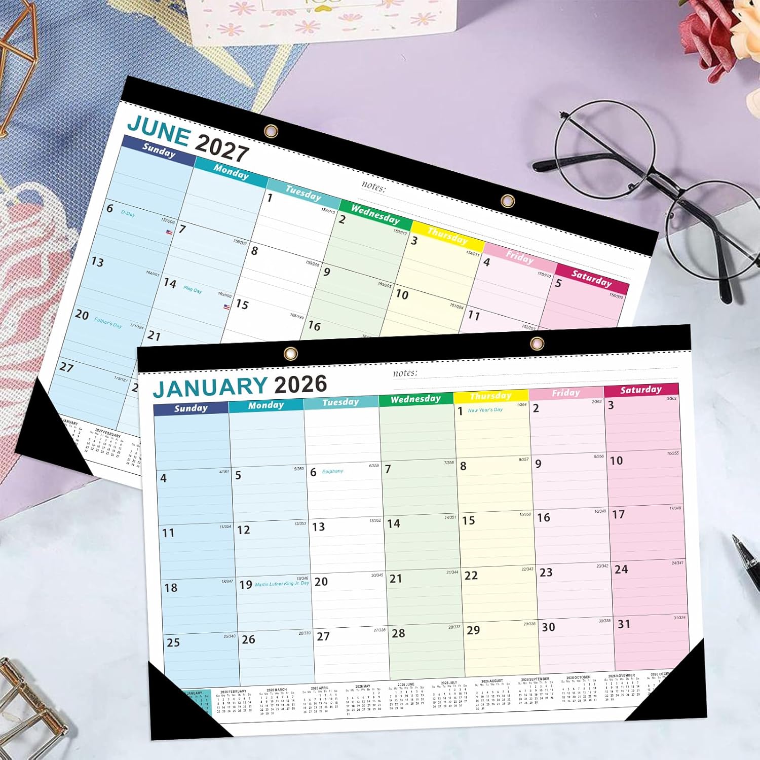 Time Span:This ZTX Desk Calendar 2026-2027 runs from Jan.2026 to Jun. 2027. Effortlessly track deadlines and events with this 18-month calendar,which features pre-marked holidays,elapsed/remaining day counters,and oversized 1.7″×2.0″ grids-ideal for students,professionals, and homemakers.