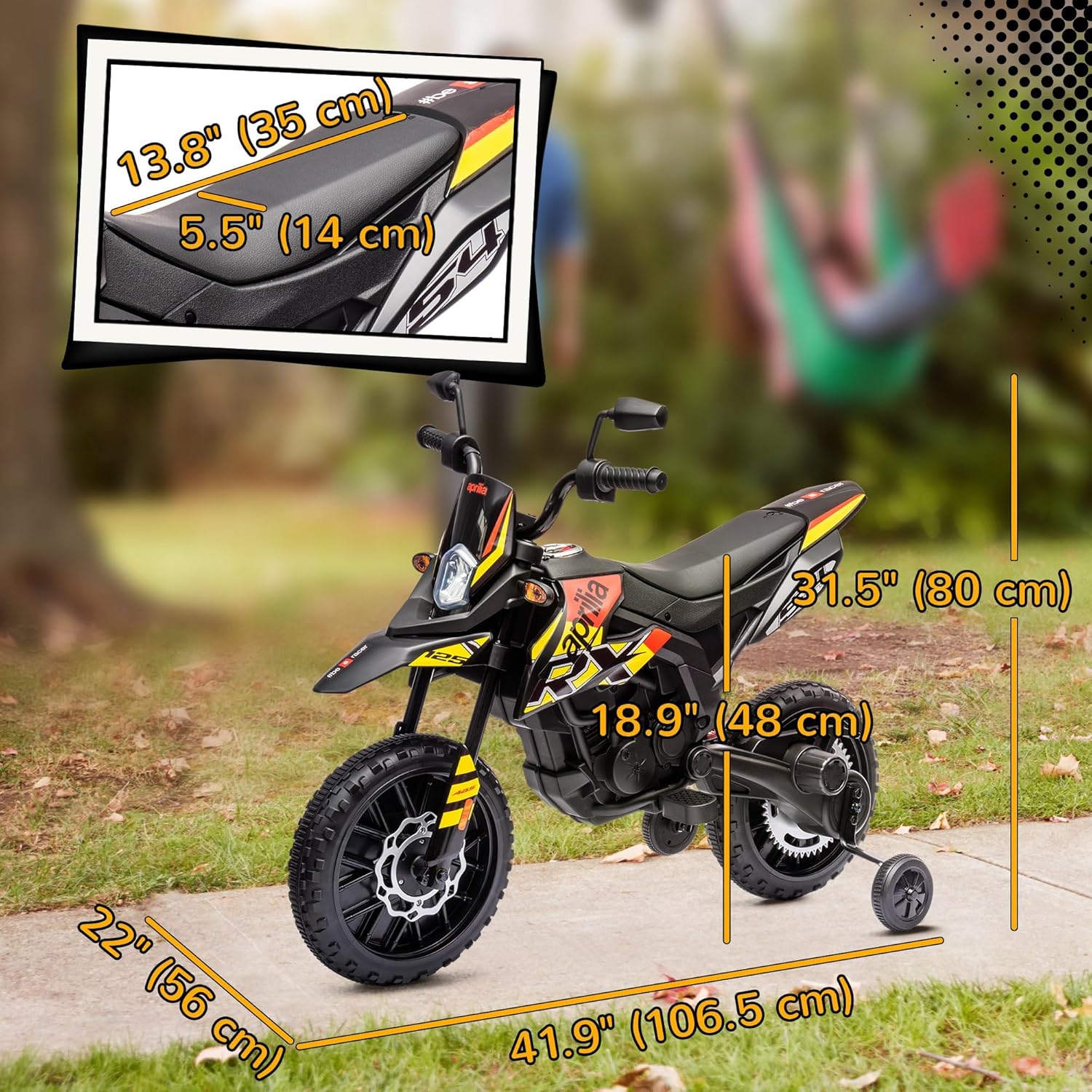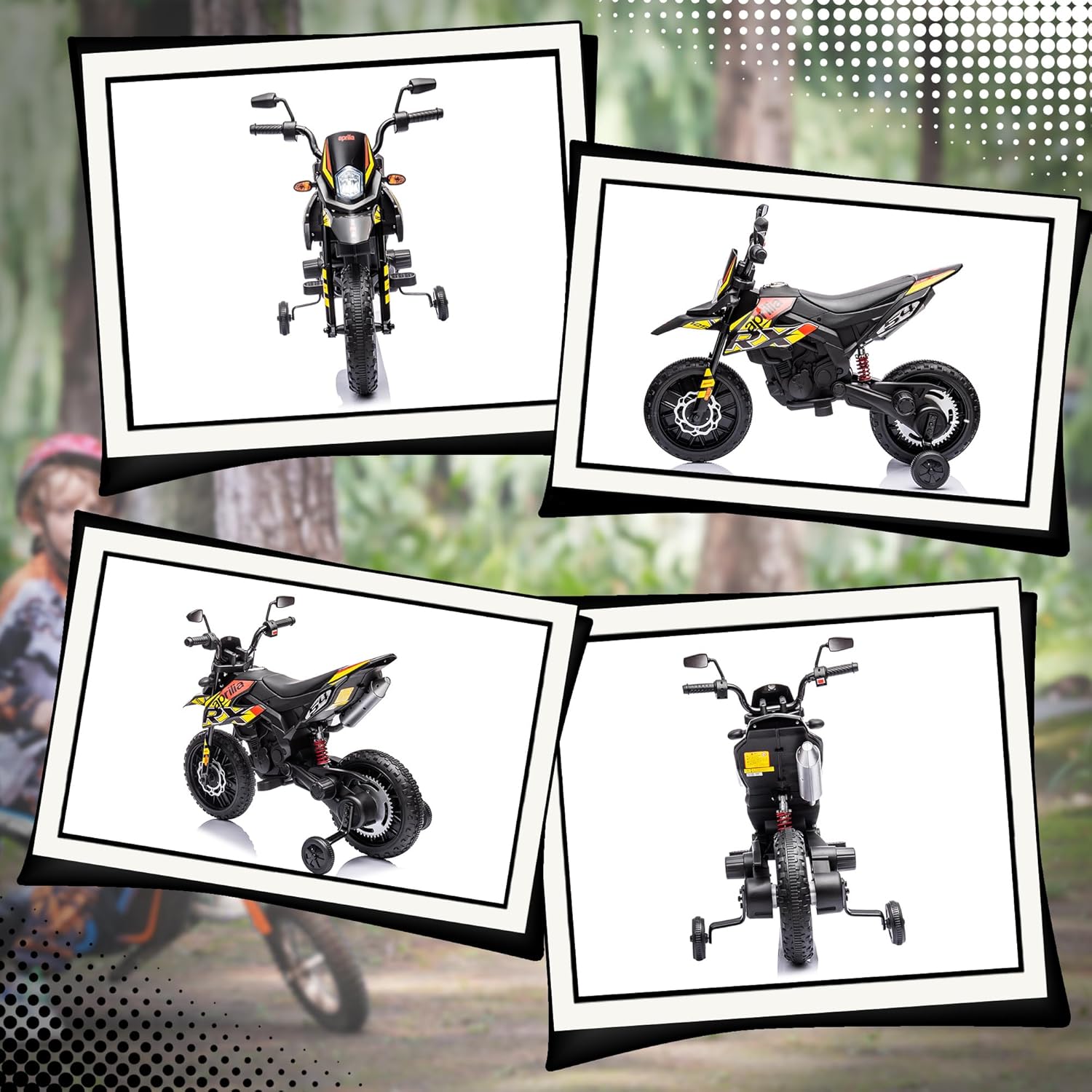 Aprilia Licenced: This kid’s dirt bike is an officially authorized Aprilia model, giving your little rider a realistic driving experience with authentic branding and style