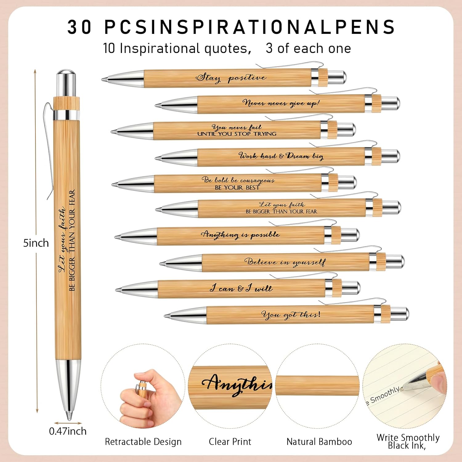 Quality Material: our motivational notebooks adopt kraft paper cover, clear printed, not easy to break or deform, and the inner pages are made of quality paper, smooth to write and thick enough; The bamboo pens are sturdy enough, featuring black ink that is easy to dry to avoid ink bleeding, giving you a comfortable writing experience