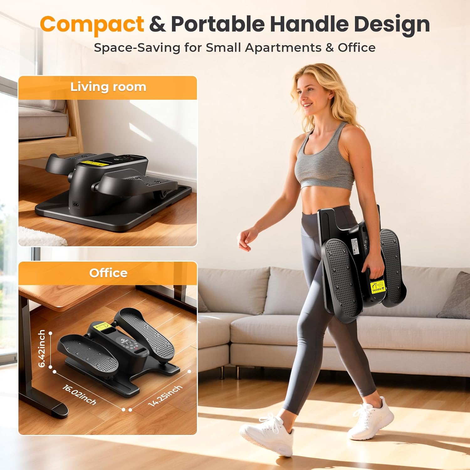 Ultra-Quiet Elliptical: Our pedal exerciser glides smoothly and quietly, thanks to advanced silent wheels and noise-reduction technology. With noise levels under 15dB, you can enjoy a home or office workout anytime—without disturbing others