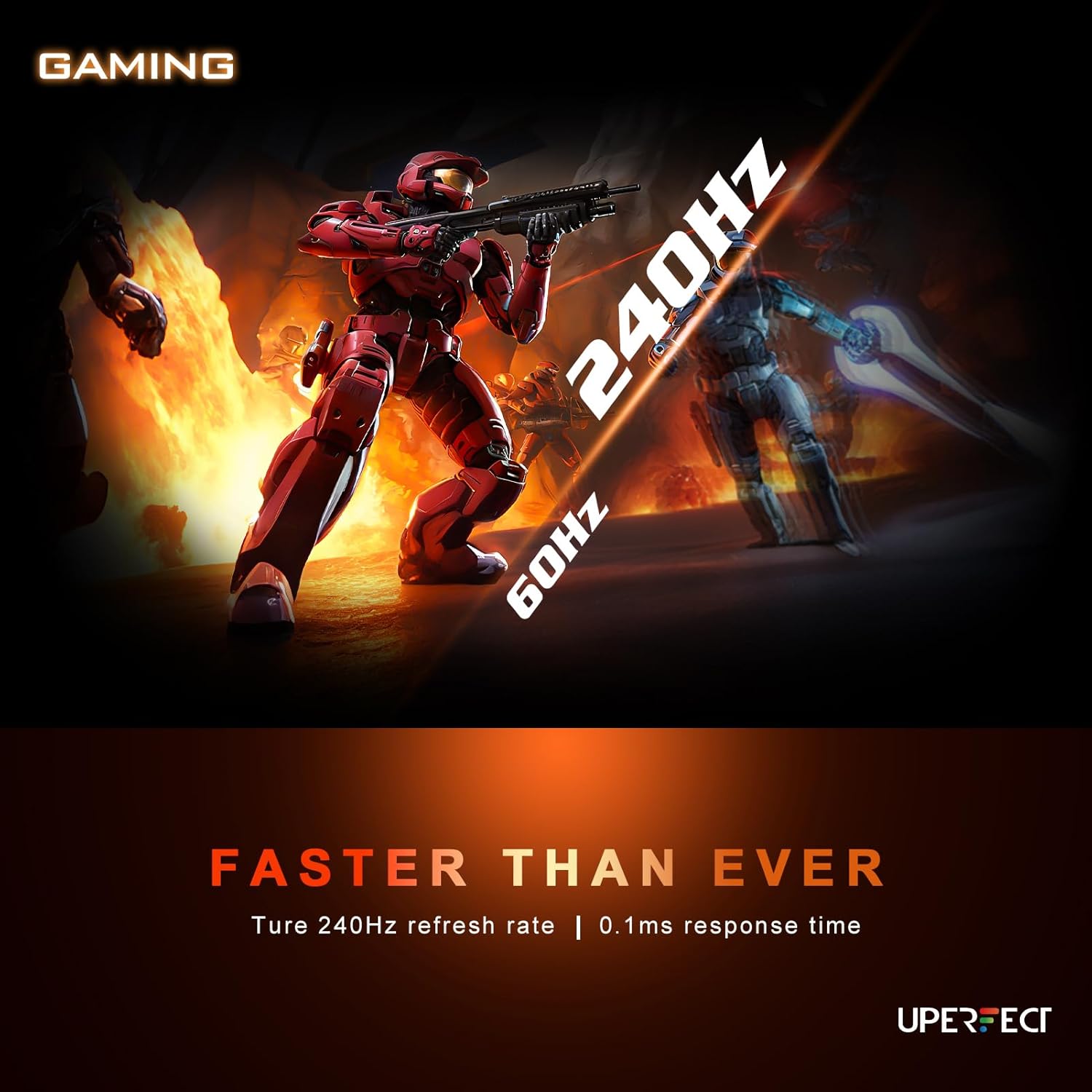 【240Hz – Born For “Fast”】 : 240Hz monitor refreshes 240 frames per second, 4x than regular 60Hz monitor. Monitor with 240Hz+FreeSync+0.1ms response time completely eliminates image fuzzy and tearing, delivering unparalleled smoothness. You can enjoy silky gaming experience and upgraded sense of immersion!
